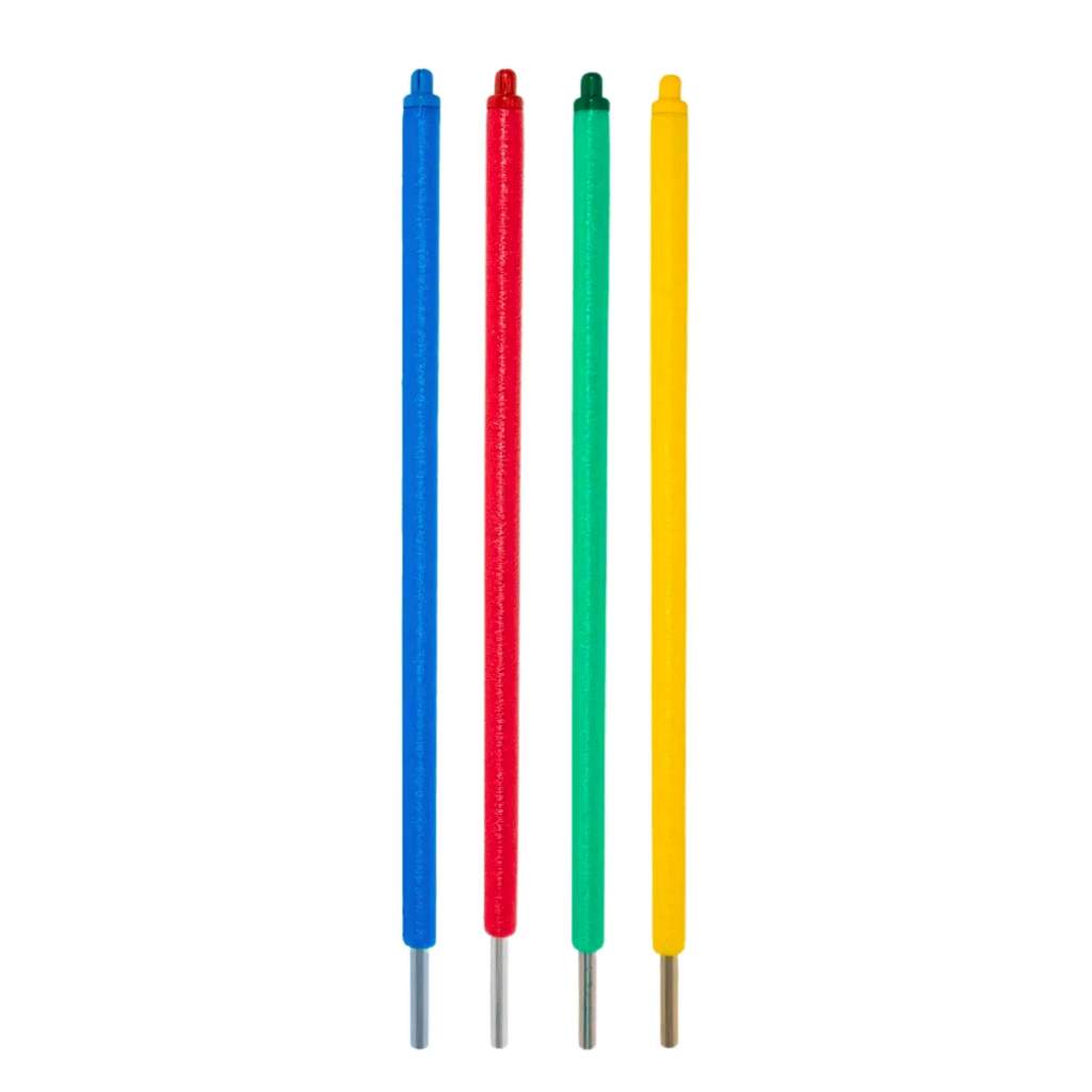 Kit Completo de Hastes para Cama Elástica - 6 unidades Quem tem e trabalha com camas elásticas sabe da importância de manter a segurança do equipamento realizando a manutenção correta da estrutura da cama elástica. Para renovar os itens da haste do seu pula-pula, é preciso substituir as peças que compõem as hastes antigas por novos acessórios de cama elástica. As peças que fazem a composição do kit de haste para pula-pula são: tubo de ferro para haste, isotubo blindado e ponteira para haste. Se você trabalha com locação de equipamentos para festas e eventos, a haste completa para cama elástica com 6 unidades é ideal para investir, pois você terá uma quantidade suficiente para reposição de acessórios para sua cama elástica. A haste completa para cama elástica vem disponível em 4 cores: amarelo, azul, verde e vermelho. Variando de acordo com a quantidade comprada, podendo ser em 1, 6 ou 8 unidades.