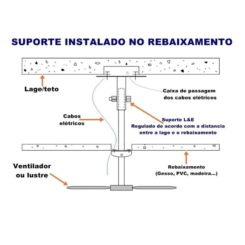 Haste Suporte Prolongadora Instalação Ventiladores Forro Gesso Rebaixamento
