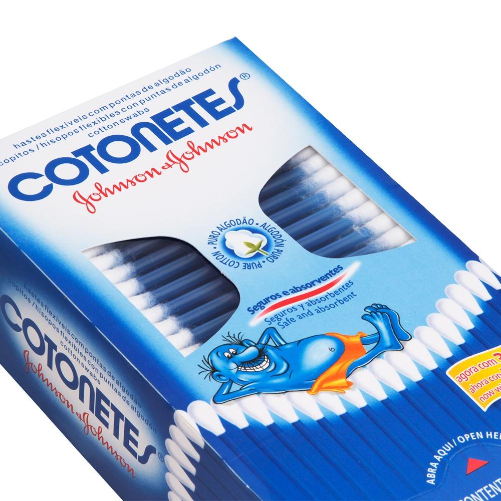 COTONETES® é feito com algodão 100% puro e possui hastes plásticas flexíveis. Por isso oferece toda a suavidade, conforto e absorção para o cuidado da sua pele. COTONETES® é indicado para a higiene pessoal de toda a família. Pode ser usado para limpar delicadamente a parte externa da orelha (desde que não atinja o canal do ouvido), as dobrinhas do pescoço e pernas do bebê, além de ser recomendado para aplicar e remover maquiagem.