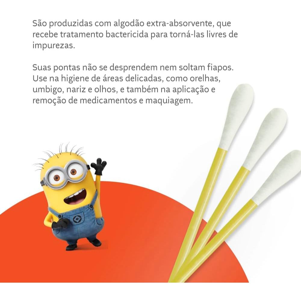 Hastes Flexíveis Cremer Minions Com 75 Unidades As Hastes Flexíveis Cremer Minions são ideais para a higienização e cuidados diários, proporcionando segurança e praticidade. Com um design divertido inspirado nos personagens Minions, tornam o momento de limpeza mais atrativo para as crianças. Principais Características: - Ponta de algodão 100% puro: Toque suave para maior conforto durante o uso. - Haste flexível e resistente: Garante segurança e evita quebras fáceis. - Embalagem decorada com os Minions: Visual lúdico e atrativo para crianças. Benefícios: - Ideal para a higiene pessoal e remoção de impurezas. - Seguro para uso em crianças, auxiliando na limpeza com delicadeza. - Pode ser utilizado também para aplicação de cosméticos e cuidados com a pele. Diferenciais do Produto: - Produto dermatologicamente testado. - Design temático exclusivo dos Minions. - Embalagem prática e compacta, ideal para levar na bolsa ou necessáire. Especificações Técnicas: - Quantidade: 75 unidades - Material: Algodão 100% puro na ponta e haste plástica flexível Instruções de Uso: - Utilize com suavidade para remover impurezas da pele e auxiliar na higiene pessoal. - Para aplicação de cosméticos, umedeça a ponta e utilize conforme necessário. Avisos e Precauções: - Não introduza no canal auditivo ou nasal. - Uso infantil deve ser supervisionado por um adulto. - Descartar após o uso para evitar contaminação. O que está incluso? - 1 Embalagem com 75 Hastes Flexíveis Cremer Minions. ---- Dúvidas Frequentes ---- Os produtos são originais? Sim. Todos os nossos produtos são originais. Emitem nota fiscal? Sim. Emitimos nota fiscal para todos os pedidos.