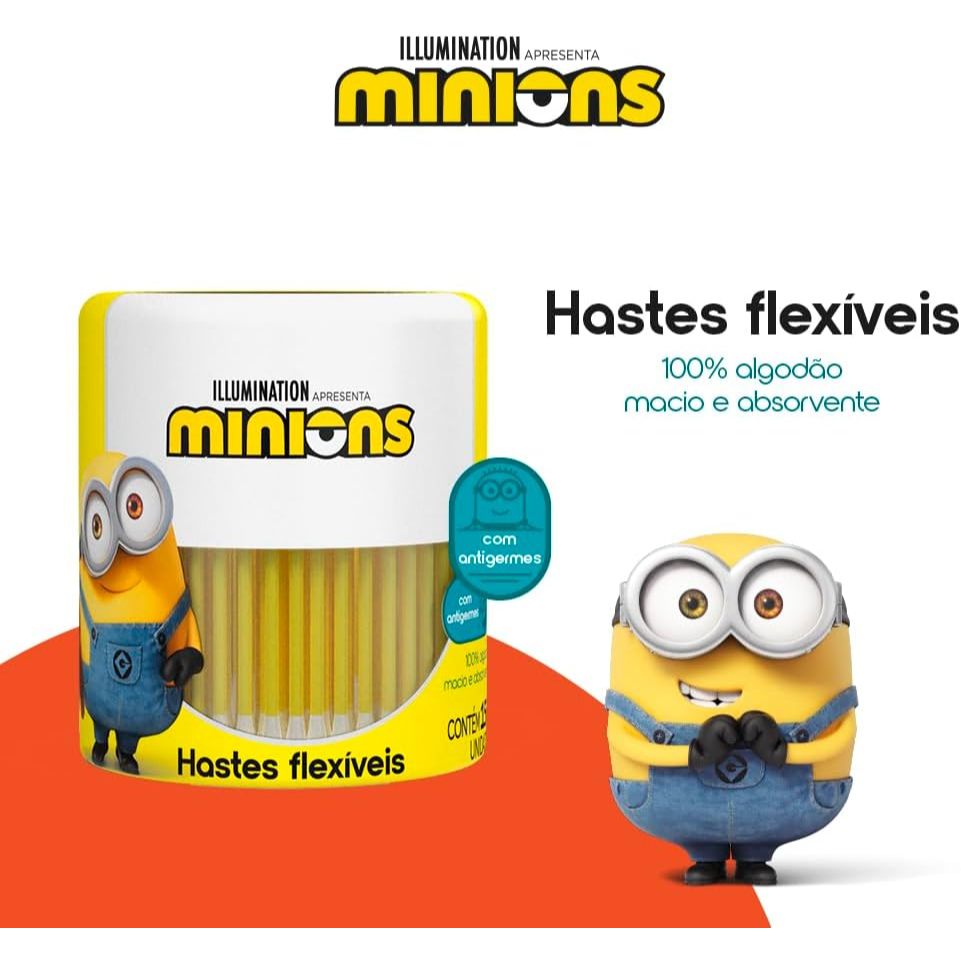 Hastes Flexíveis Cremer Minions Pote Com 150 Unidades As Hastes Flexíveis Cremer Minions são ideais para a higiene e cuidado diário. Com um design temático divertido dos Minions, elas proporcionam segurança e praticidade para toda a família. Principais Características: - Ponta 100% Algodão: Macia e segura para o uso, garantindo suavidade na pele. - Haste Resistente: Desenvolvida com material flexível, oferecendo maior segurança ao manuseio. - Pote Prático com 150 Unidades: Embalagem funcional que facilita o armazenamento e conserva as hastes protegidas. Benefícios: - Ideal para a higiene pessoal, remoção de maquiagem e aplicação de produtos. - Material seguro e dermatologicamente testado. - Embalagem decorada com os Minions, tornando o cuidado mais divertido para as crianças. Diferenciais do Produto: - Produto de alta qualidade fabricado pela Cremer, marca referência em higiene e cuidados. - Hastes resistentes, garantindo maior segurança durante o uso. - Pote reutilizável, promovendo mais praticidade no dia a dia. Especificações Técnicas: - Quantidade: 150 unidades. - Material: Algodão e haste plástica flexível. - Marca: Cremer. Instruções de Uso: - Utilize para a limpeza da parte externa do ouvido, remoção de maquiagem ou outros cuidados diários. - Evite inserir no canal auditivo para prevenir danos. Avisos e Precauções: - Não introduza no canal auditivo ou nasal. - Manter fora do alcance de crianças sem supervisão. - Armazene em local seco e arejado. O que está incluso? - 1 Pote com 150 unidades de Hastes Flexíveis Cremer Minions. ---- DÚVIDAS FREQUENTES ---- Os produtos são originais? Sim. Todos os nossos produtos são originais. Emitem nota fiscal? Sim. Emitimos nota fiscal para todos os pedidos.