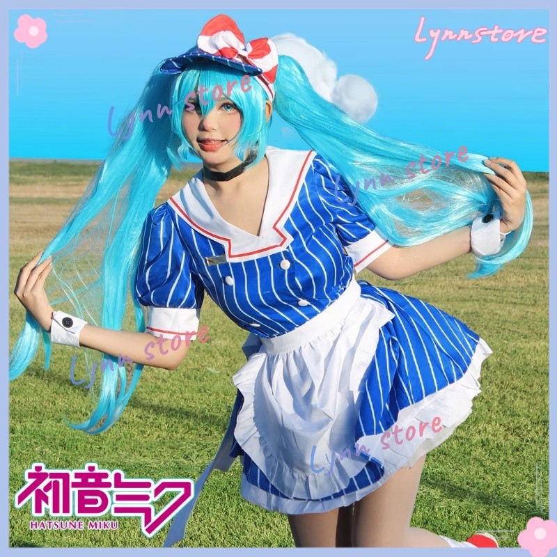 HATSUNE MIKU Cosplay Traje Peruca MESMERIZER Listrado Vestido De Empregada Conjunto Anime Festa Roleplay Outfit
