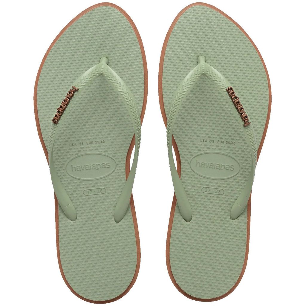 ✨ Havaianas Slim Point: A Sofisticação do Bico Pontudo Perspectiva: O encontro perfeito entre o conforto lendário e a última tendência de moda. A Havaianas Slim Point é um ícone reinventado, criado para quem não abre mão do bem-estar, mas exige um toque de vanguarda no look. 💖 Destaques do Design A Tendência do Bico Pontudo (Point Toe): O grande diferencial. O bico sutilmente pontudo, inspirado nas passarelas, alonga a silhueta do pé, conferindo imediatamente um ar de elegância e modernidade. É o formato que faltava para levar o chinelo do casual ao fashion. O Efeito Moderno-Colorido: O design inteligente cria um contraste visual marcante: Tons Pastel (Sola/Tiras): Como o delicado verde Smoke Green da imagem, oferecem leveza e suavidade. Contraste Ousado (Bordas e Solado): A cor vibrante ou terrosa (como o marrom Ferrugem) das laterais e da parte inferior do solado cria um efeito de bloco de cor moderno e inesperado. Detalhes de Luxo: As tiras finas (Slim) e o Logo Metálico (na imagem em tom de cobre/rosé gold) trazem um acabamento premium, elevando a sandália do patamar de "básica" para "essencial de estilo". 💡 Por Que Você Vai Amar A Havaianas Slim Point é a escolha ideal para: Aparência Sofisticada: Ela transforma seu look casual em algo imediatamente mais elaborado e trendy, perfeita para combinar com vestidos fluidos, alfaiataria leve ou jeans mais estilosos. Conforto Sem Sacrifício: Você tem a sensação de estar usando um calçado da moda, mas com o conforto, a leveza e a durabilidade inigualáveis da borracha original Havaianas.