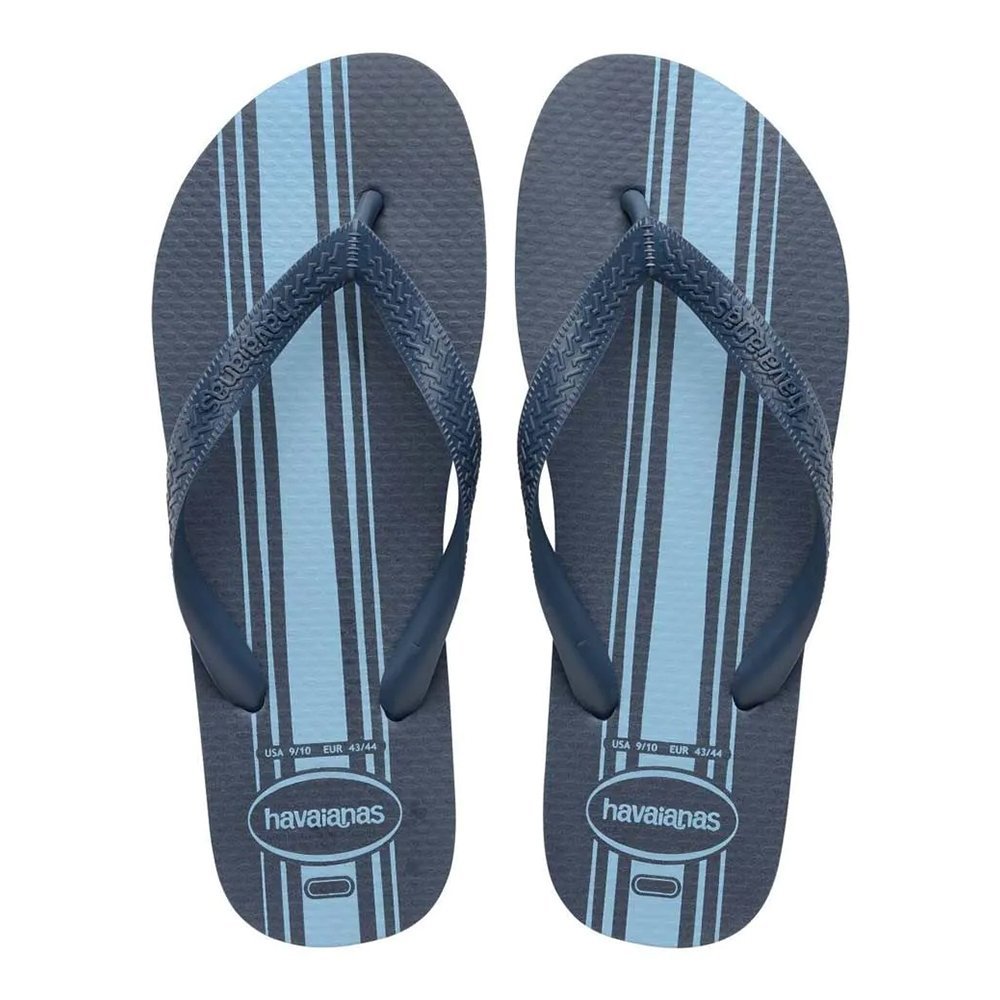 Características do Produto: Marca: Havaianas Cor: Azul Tipo de Solado: Tradicional Estampa do Solado: Listrado Tipo de Tira: Tradicional Ean: 7909989681541 Características Adicionais: Modelo simples, clássico e discreto. A sandália possui sola antiderrapante feita 100% de borracha. Lista de Cuidados: Lave à mão com sabão neutro. Seque em lugar arejado. Fornecedor: Alpargatas S/A