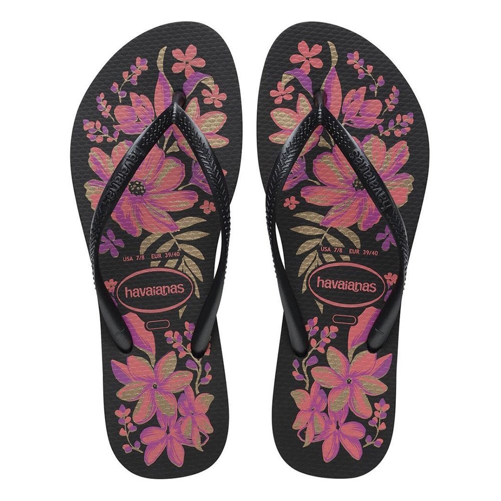 Características do Produto: Marca: Havaianas Cor: Preto/Cinza/Ouro Tipo de Solado: Slim Solado Estampado: Sim Tipo de Tira: Slim Ean: 7909989624869 Características Adicionais: Delicado e romântico. Um dos modelos mais clássicos. A sandália feita 100% de borracha. Lista de Cuidados: Lave à mão com sabão neutro. Seque em lugar arejado. Fornecedor: Alpargatas S/A