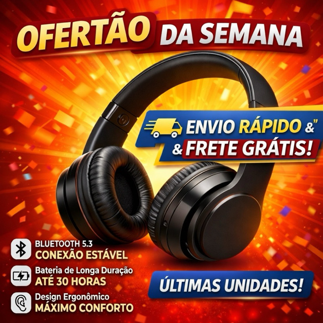 Headphone Bluetooth Sem Fio Dobrável Com fone Grave Potente Barato envio rápido PROMOÇÃO DO DIA ATÉ ÀS 23:00 integra a oferta da Shopee Brasil na subcategoria Fones de Ouvido, Headphones e Headsets (de Áudio) por R$ 18,90. Com avaliação de 4.8 de 5 estrelas e 278 unidades vendidas, este produto se destaca pelo excelente custo-benefício.