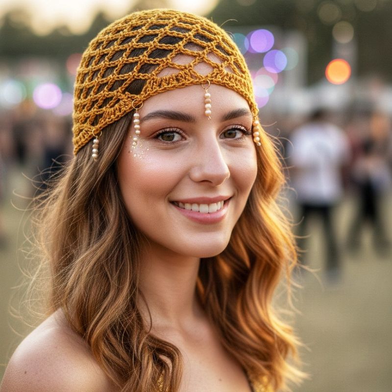 | Headpiece Touca de Crochê Boho Praia Feita à Mão Primavera Verão Te... | R$ 62,00 | — | 5.0/5 | — |