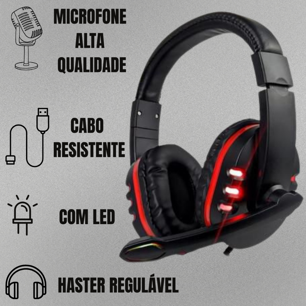 Headset Gamer Com Microfone Profissional Led Rgb Colorida Com Fio Pc Jogos