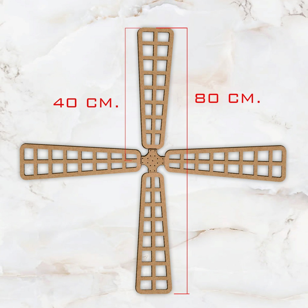 Hélice Moinho Holandes 80x80cm Catavento Mdf Crú DesmontáveL Cortado a Laser