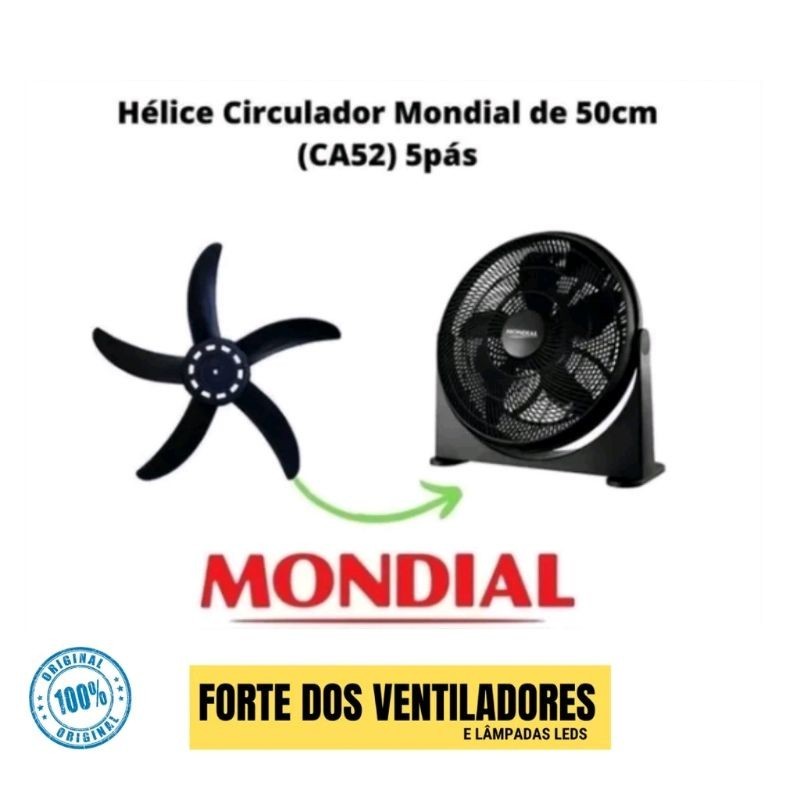 Hélice Ventilador Circulador Mondial CA-52 5 Pás Peça Original