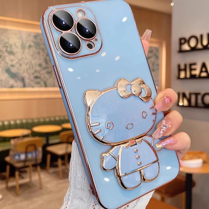 Hello Kitty Suporte para espelho Capa macia Capinha iphone 11/12/13/14/15/16 Pro max,anti impacto