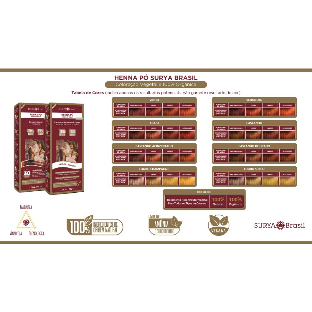 HENNA pó louro champagne 50g surya Brasil