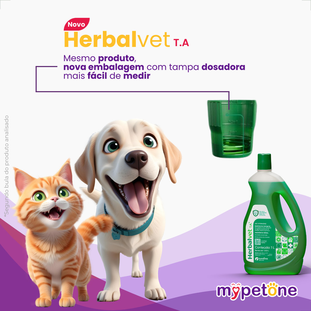- Limpeza de ambientes em geral; - Possuí ação bactericida, fungicida e protozoaricida; - Não é corrosivo, não mancha tecidos e é altamente seguro. Detalhes O Desinfetante Bactericida Herbalvet T.A é indicado na desinfecção e desodorização de ambientes em geral, clínicas e hospitais veterinários, canis, gatis, etc.; e ainda em mesas de atendimento e cirúrgicas, instrumentais cirúrgicos, lâminas de tosa, aventais e outros materiais. Dicas Especiais O produto deve ser diluído na água, na dosagem de 1 ml do produto para 500 ml de água, ou seja, 10 ml em 5 litros de água e aplicado na superfície ou material a ser desinfetado. O produto não deve ser utilizado com nenhum outro agente de limpeza, pois esta associação pode afetar sua ação desinfetante. Lâminas de tosa e instrumentais cirúrgicos: Diluir 1 ml do produto em 500 ml de água. Lavar e enxaguar as peças e deixá-las imersas na solução do produto durante o tempo máximo de 15 a 20 minutos. Retirar as peças e secá-las totalmente. No caso de lâminas de tosa, realizar uma lubrificação após a secagem. Não necessita enxágue. O produto não é corrosivo. Composição Cada 100 ml contém: Cloreto de benzalcônio 15,00 g Veículo q.s.p 100,00 ml