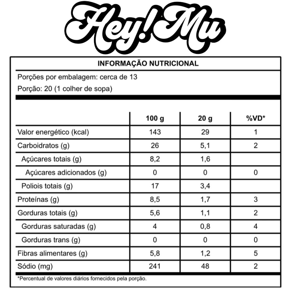| HEY MU DOCE DE LEITE ZERO ADIÇÃO DE AÇUCAR 250G - KIT 2 UN este produto | R$ 78,00 | 22% | 5.0/5 | 1 |