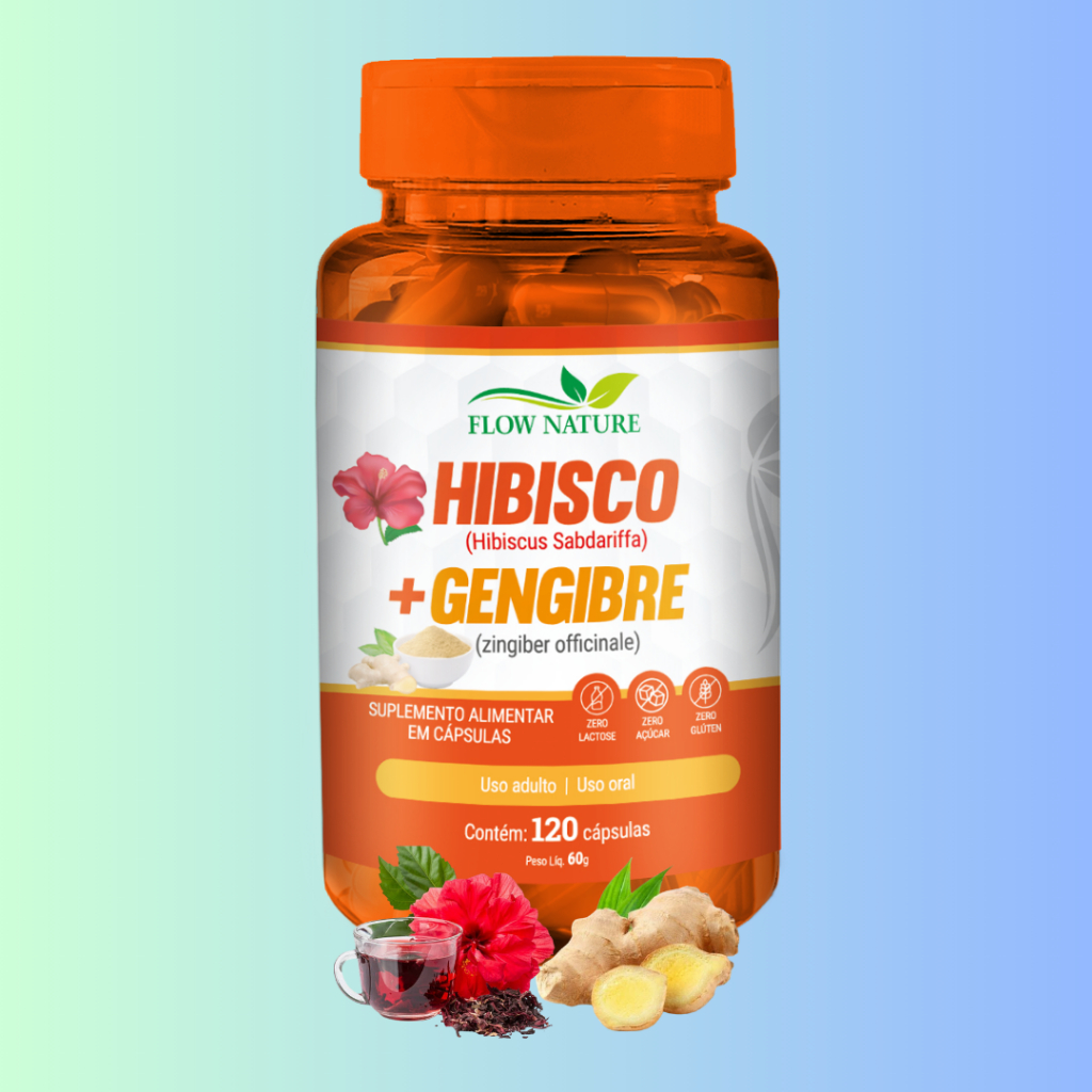 Hibisco Com Gengibre 120 Cápsulas de 120mg - Flow Nature - Kits 1, 2 e 3 Potes