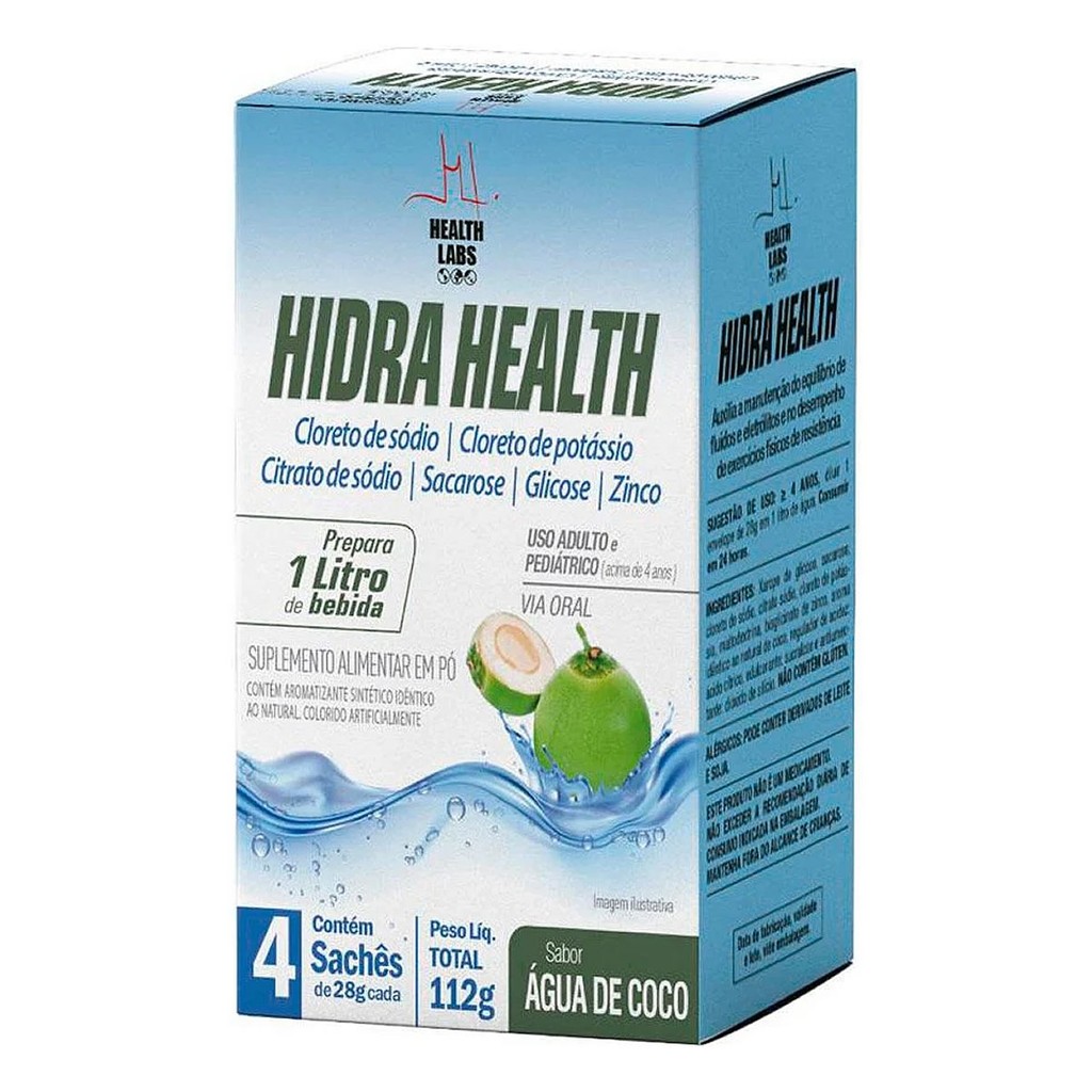 O Hidra Health Água de Coco Health Labs 4 sachês de 28g foi desenvolvido para promover hidratação rápida e eficaz, auxiliando na reposição de líquidos e sais minerais perdidos durante treinos, competições ou no dia a dia. Com sabor natural de água de coco, refrescante e leve, este suplemento contribui para manter o equilíbrio eletrolítico, prevenir a fadiga e favorecer o bom desempenho físico. Sua formulação prática em sachês permite fácil transporte e preparo, tornando-se uma opção ideal para quem busca saúde, praticidade e performance. Benefícios do Hidra Health Água de Coco: Reposição rápida de sais minerais (eletrólitos); Ajuda na manutenção da hidratação corporal; Favorece a resistência e recuperação durante treinos; Praticidade em sachês individuais; Sabor agradável de água de coco. Modo de uso: Diluir o conteúdo de 1 sachê (28g) em água, conforme recomendação de médico ou nutricionista. ⚠️ Atenção: Este produto não substitui uma alimentação equilibrada. Não exceder a ingestão diária recomendada.