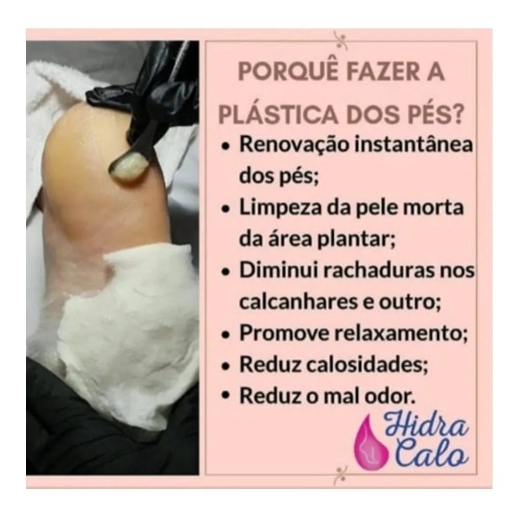 01 Hidracalo 1 Litro Loção Emoliente Plástica e Spa dos Pés: - A base de tensoativo e emoliente; - Enriquecido com extratos de aveia, camomila e aloe vera; - Acelerador de cutilagem instantâneo; - Ideal para protocolo de spa dos pés; - Ideal para remoção de cutículas; - Ideal para amaciar os pés; - Usar apenas em pele íntegra; - Produto não testado em animais; - Produto compatível com outras marcas; - Indústria brasileira. - Contem teste de eficácia APRESENTAÇÃO: PRODUTO COM DUPLA FUNÇÃO ( produto liquido ): ---> 1º EMOLIENTE PARA SPA DOS PÉS ( PLASTICA DOS PÉS DEVIDO AO RESULTADO IMEDIATO E RENOVADOR ) E com o mesmo produto você também consegue fazer: ---> 2º EMOLIENCIA INSTANTÂNEA DA CUTÍCULA USANDO SOMENTE 1 GOTINHA NA CUTÍCULA, COM O AUXILIO DE UM FRASCO VAZIO DE ESMALTE, SÓ PINCELAR NA CUTÍCULA, UMEDECER COM ÁGUA OU CREME AQUOSO DE SUA PREFERÊNCIA E JÁ ESTÁ PRONTO PARA CUTILAR ( Diminui muito o tempo com o acelerador). OBS: O Hidracalo é um cosmético destinado ao embelezamento, não é um produto com finalidade terapêutica! Na apostila contém o modo correto de uso e suas restrições, leia atentamente para o manuseio correto do mesmo, e em caso de dúvidas tem o suporte para clientes no inbox! Cada frasco de 1 litro rende: * SPA DOS PÉS 30 procedimentos de Spa dos pés completo, sendo cobrado por atendimento media de R$ 30,00, ou seja um frasco retornará lucro de R$ 900,00 ** CUTÍCULA : 500 cutículas para +, pois o indicado é 1 gota por cutícula, NÃO USE COM ALGODÃO SOBRE A UNHA, GERA ERRO DE USO E DESPERDÍCIO DE PRODUTO, dicas é só solicitar no inbox! A utilização do produto de forma não recomendada é inteiramente de responsabilidade de quem o manuseia.