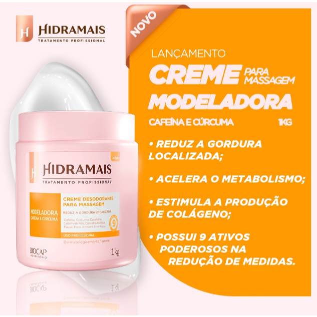 Hidramais Creme para Massagem Modeladora Cafeína e Cúrcuma 1Kg