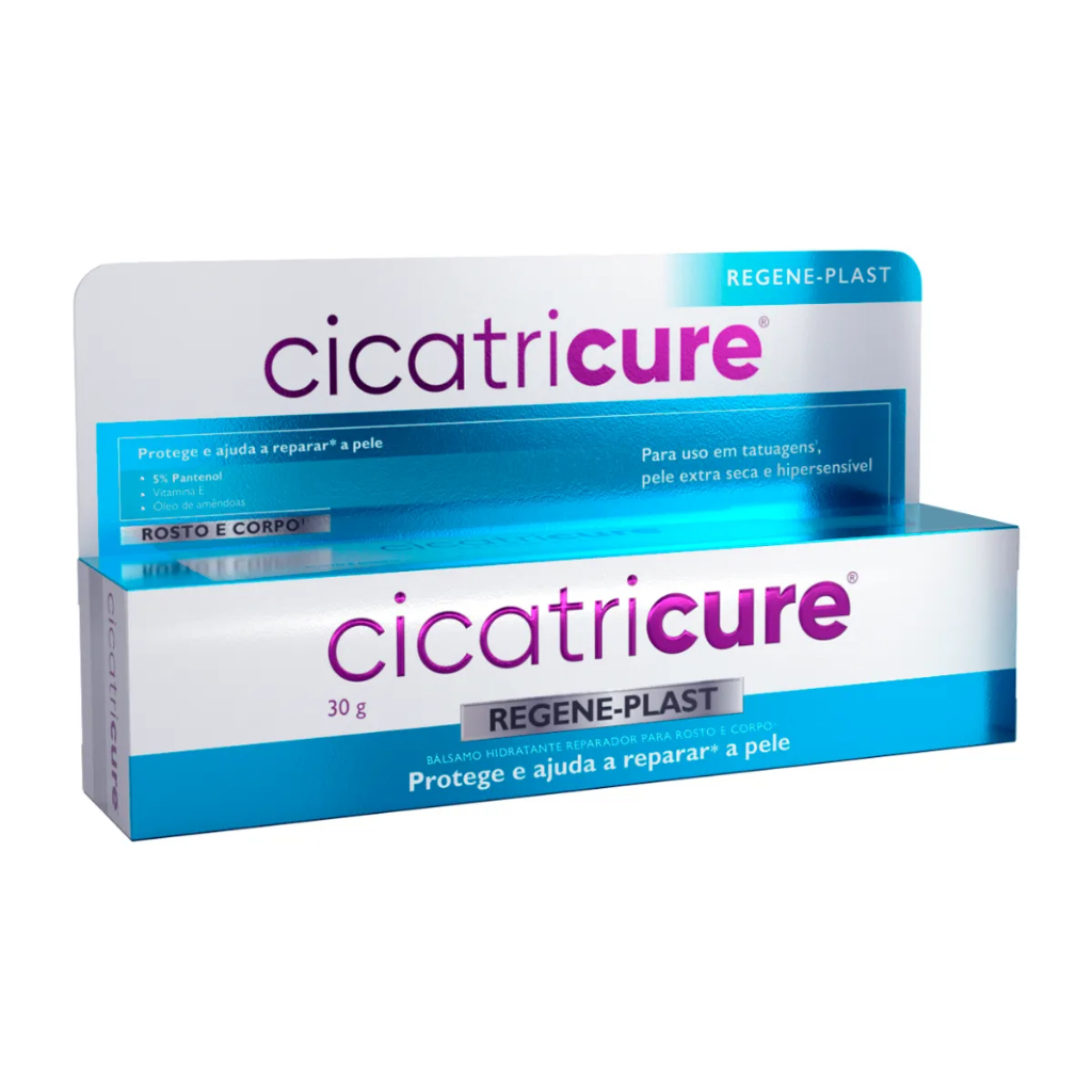 HIDRATANTE CICATRICURE REGENE-PLAST 30G O Reparador Hidratante Rosto e Corpo Cicatricure Regeneplast é um hidratante desenvolvido para o cuidado intensivo da pele extra seca, hipersensível e/ou com tatuagens cicatrizadas. Sua fórmula atua criando uma camada protetora que ajuda a fortalecer a barreira cutânea da pele, proporcionando hidratação profunda e reparação no nível da epiderme. Ideal para uso no rosto e corpo, oferece alívio e proteção para peles que necessitam de cuidados especiais. Benefícios - Protege e ajuda a reparar a pele extra seca e hipersensível - Indicado para uso sobre tatuagens cicatrizadas - Cria uma camada protetora que fortalece a barreira cutânea - Aplicação pontual no rosto, evitando o contorno dos olhos - Dermatologicamente testado para segurança e eficácia Modo de Uso Aplicar duas vezes ao dia sobre a pele limpa e seca. Colocar a quantidade necessária pontualmente na área desejada. Realizar uma massagem suave até completa absorção. Na área do rosto, aplicar de forma pontual, evitando o contorno dos olhos. Não aplicar sobre feridas abertas.