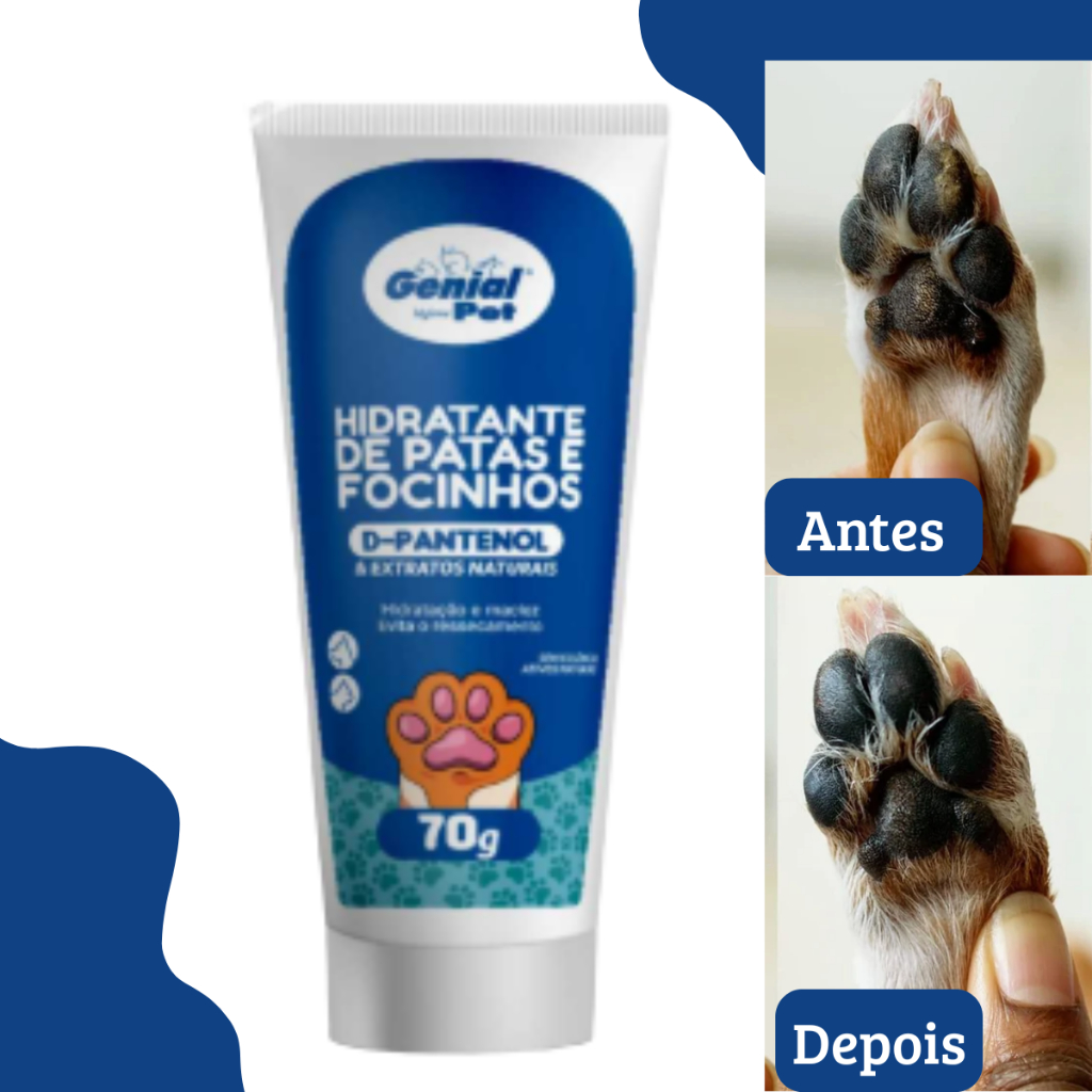 >>>>ENVIO IMEDIATO<<< 1 HIDRATANTE PET PATAS E FOCINHOS – 70 g - Indicado para cães e gatos de todas as idades e de todos os portes; - Elaborado com D-pantenol e extrato de aveia; - Conta com composição segura e suave, sem essência e feito com ativos naturais. - Volume produto: 70g BENEFÍCIOS: - Hidratação das patinhas e focinhos de cachorros e gatos. - Previne rachaduras. - Evita Ressecamentos. - Não agride o animal. - Indicado para cães e gatos. Informações Técnicas: Produtos: Hidratante de Patinhas e Focinhos para Cães e Gatos 70g Marca: Genial Pet Animal: Cachorros e Gatos Porte: Todos Raça Específica: Não Sexo Específico: Não Fragrância: Leve e Suave PRECAUÇÕES Uso externo. Evite contato com os olhos e mucosas do animal. Manter em local fresco e seco, fora do alcance de crianças e animais domésticos. Caso houver a constatação de hipersensibilidade, suspender o uso. Não utilizar em filhotes com menos de 3 meses de vida. Manter longe de alimentos, medicamentos e produtos domésticos ou de higiene pessoal.