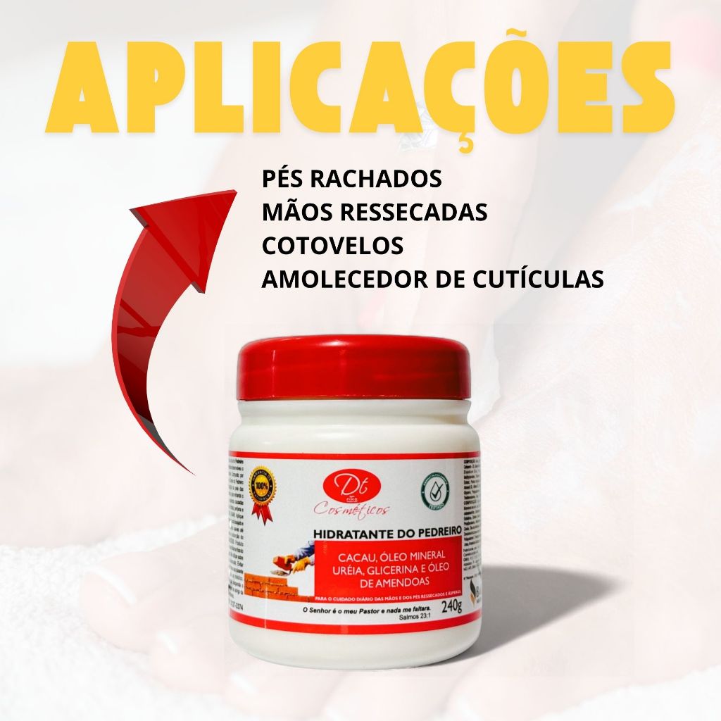 Hidratante De Ureia 240G Creme De Pedreiro Pés Rachados E Ressecados Cacau Amêndoas Glicerina