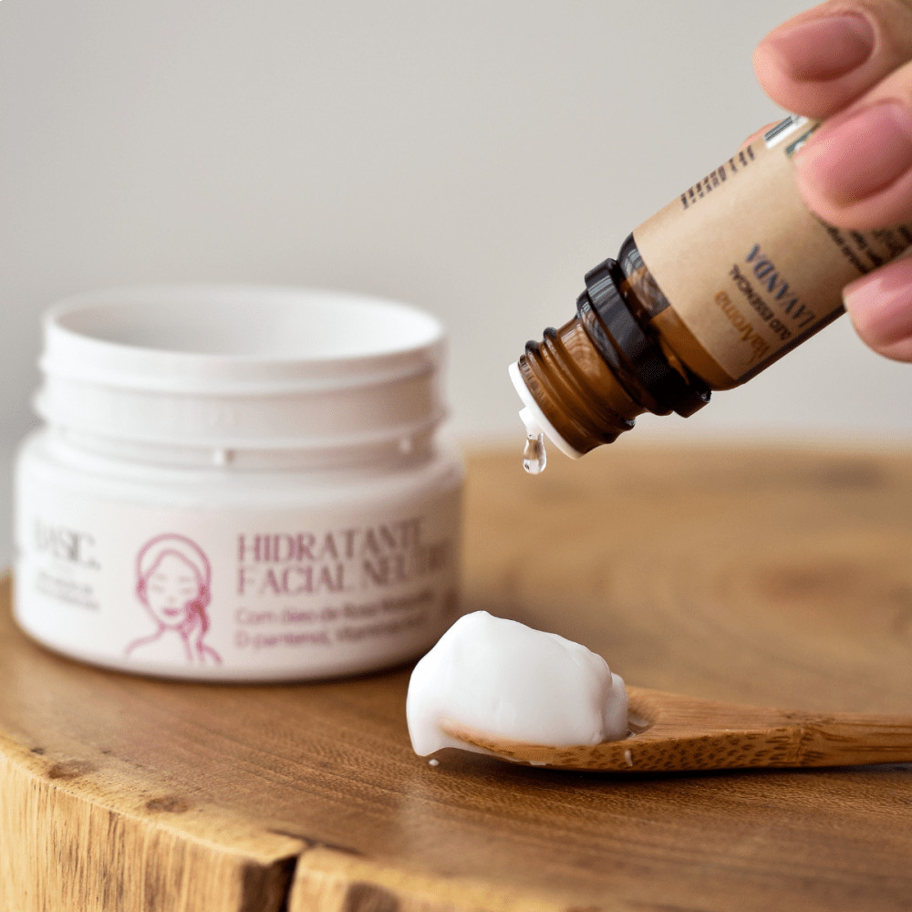 O creme Hidratante Facial Neutro da Linha Basic Via Aroma 100g é um produto neutro e vegano, totalmente livre de compostos químicos para não agredir a pele delicada do rosto._x000d_ Você pode usar este produto tanto puro, quanto com óleos essenciais para personalizar de acordo com a sua necessidade. Nosso Creme Facial Neutro Via Aroma é excelente para peles sensíveis, secas, oleosas e maduras. _x000d_ _x000d_ Cuide de você e da natureza! Além de vegano e sem testes em animais, a fórmula do Creme Facial Neutro é..._x000d_ _x000d_ Sem parabenos,sem sulfatoss,sem silicones e sem amônias._x000d_