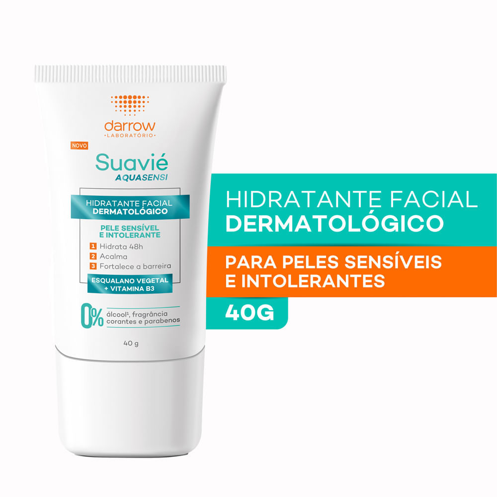 Hidratante Facial Darrow Suavie Aquasensi O Novo Suavié Aquasensi é um hidratante facial ideal para peles sensíveis ou sensibilizadas. Sua fórmula possui uma combinação exclusiva de ativos calmantes.