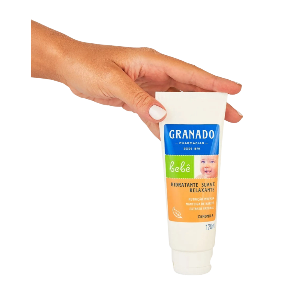 Hidratante Granado Bebê Camomila 120ml Proporcione um cuidado delicado e especial para a pele do seu bebê com o Hidratante Granado Bebê Camomila 120ml. Desenvolvido com ingredientes naturais e especialmente formulado para peles sensíveis, esse hidratante promove maciez e suavidade com uma fragrância suave e relaxante. Principais Características: - Fórmula Natural e Hipoalergênica: Com ingredientes suaves, testados dermatologicamente e livre de parabenos, corantes e fragrâncias artificiais, ideal para a pele delicada do bebê. - Extrato Natural de Camomila: Conhecido por suas propriedades calmantes e suavizantes, ajuda a manter a pele hidratada e protegida. - Textura Leve e de Rápida Absorção: Facilita a aplicação e proporciona conforto imediato sem deixar a pele oleosa. Benefícios: - Hidrata profundamente a pele do bebê, prevenindo o ressecamento. - Proporciona sensação de maciez e suavidade prolongada. - Perfume delicado e natural que promove uma experiência relaxante. - Seguro para uso diário, garantindo proteção e bem-estar para a pele sensível do bebê. Diferenciais do Produto: - Dermatologicamente testado, garantindo segurança e eficácia. - Livre de substâncias prejudiciais como parabenos e corantes. - Desenvolvido por uma marca de tradição reconhecida pela qualidade de seus produtos infantis. Especificações Técnicas: - Peso: 120ml Instruções de Uso: - Aplique uma pequena quantidade do hidratante na pele limpa e seca do bebê, espalhando com movimentos suaves até completa absorção. - Pode ser usado diariamente, preferencialmente após o banho ou sempre que necessário. Avisos e Precauções: - Uso externo. - Evite o contato com os olhos. Em caso de contato acidental, enxágue com água abundante. - Mantenha fora do alcance de crianças. - Suspenda o uso em caso de irritação da pele. O que está incluso? - 01 Hidratante Granado Bebê Camomila 120ml ---- DÚVIDAS FREQUENTES ---- Os produtos são originais? Sim. Todos os nossos produtos são originais. Emitem nota fiscal? Sim. Emitimos nota fiscal para todos os pedidos.