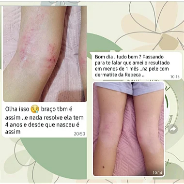 Nosso creme hidratante infantil foi especialmente desenvolvido para cuidar da pele delicada e sensível de bebês e crianças, oferecendo hidratação profunda, proteção e alívio para sintomas como vermelhidão, coceira, ressecamento e dermatite atópica. Formulado com ativos naturais calmantes e anti-inflamatórios, é ideal para auxiliar em casos de: *Dermatite infantil *Alergias de pele *Pele ressecada, irritada ou com coceiras *Assaduras e sensibilidades cutâneas 🍃 Ingredientes que tratam e protegem: * Extrato de Aveia e Hidrolato de Camomila: suavizam, acalmam a pele e reduzem inflamações. * Óleo Essencial de Lavanda: ação calmante e antisséptica, que alivia a coceira. * Manteiga de Karité e Óleo de Coco: nutrem profundamente e fortalecem a barreira natural da pele. Essa combinação poderosa atua diretamente nos sintomas da dermatite, trazendo conforto e bem-estar para a criança. *Seguro e confiável: * Hipoalergênico * Livre de parabenos, corantes, petrolatos e fragrâncias sintéticas * Textura leve, fácil de espalhar e de rápida absorção * Testado por mães reais, com excelentes resultados no alívio da coceira e regeneração da pele ❤️ Indicado para: Bebês a partir dos 6 meses, crianças com pele sensível, atópica, com tendência a alergias, eczema ou dermatite. COMPOSIÇÃO.: Base neutra, Hidrolato de Camomila, Extrato de Aveia, Óleo de coco Babaçu, Manteiga de Karite, Glicerina Vegetal, Oleo essencial de Lavanda
