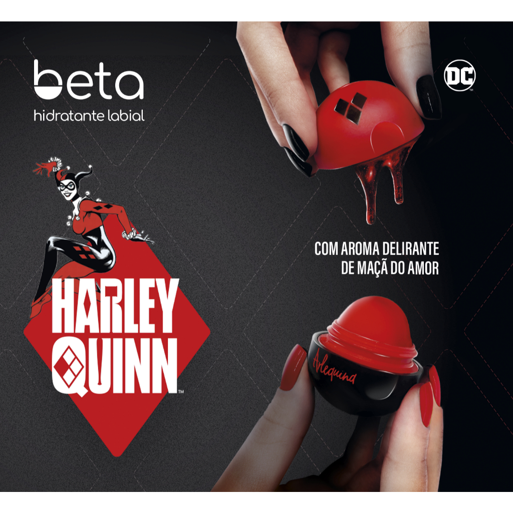 EDIÇÃO LIMITADA: BETA ARLEQUINA – MAÇÃ DO AMOR Experimente esta aventura eletrizante. Mostre quem você é de verdade. O hidratante labial Beta Arlequina é mais uma parceria entre a FreeBrands e a Warner Bros. A famosa personagem dos quadrinhos e do cinema agora chega para surpreender os fãs de Beta. São duas versões de embalagem para colecionar com aroma delirante de maçã do amor. Além de hidratar, Beta Arlequina deixa os lábios com um tom deslumbrante de vermelho. Aproveite e realce o seu melhor lado. A fórmula exclusiva garante hidratação profunda, combinada com proteção solar (FPS 6). Permita-se esta experiência e conheça Beta Arlequina. Cinema, beleza e cuidado com os lábios. Elaborado a partir de óleos naturais de alta qualidade, livre de óleos minerais, garantindo uma fórmula premium. Atributos: - Aroma de maçã do amor - Com cor (vermelho) - Testado dermatologicamente - Design exclusivo e ergonômico - Em duas versões de embalagem para colecionar - FPS 6 - Estiloso - Inovador - Fórmula premium Viva esta aventura com o hidratante labial Beta Arlequina edição limitada - inspirado na personagem Harley Quinn. Modo de usar: Aplique nos lábios e no contorno, sempre que precisar. Importante: Em caso de ingestão ou irritação, suspenda o uso do produto e procure um especialista. Mantenha o produto em um local seco e arejado. Mantenha o produto fora do alcance de crianças.