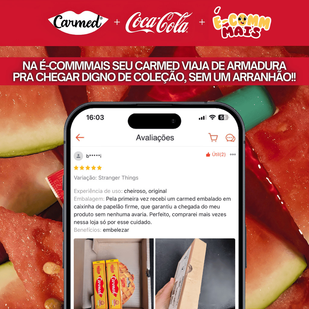 🍉✨ Carmed Hidratante Labial Melancia | 10g Refrescante, leve e irresistível! O Carmed Hidratante Labial sabor Melancia combina hidratação intensa com um aroma frutado doce e refrescante, deixando os lábios macios, protegidos e com um cheirinho delicioso. Perfeito para quem ama fragrâncias leves e um cuidado diário confortável. 🌈 Características Principais -💋 Alta hidratação, ajudando a prevenir o ressecamento dos lábios. -🍉 Aroma frutado doce e refrescante de melancia. -🧴 Embalagem prática de 10g, ideal para levar na bolsa ou mochila. -✨ Textura leve e confortável, sem sensação pegajosa. -🎀 Indicado para todas as idades e para presentear. 💧 Uso e Indicação * Indicado para hidratar e proteger os lábios no dia a dia. * Pode ser usado sozinho ou antes do batom. * Uso diário para crianças, adolescentes e adultos. 📦 O Produto Contém 1️⃣ Hidratante Labial Carmed sabor Melancia | 10g 💡 Dica Extra Leve seu Carmed Melancia sempre com você e aproveite lábios hidratados com um aroma fresco e frutado durante todo o dia! 🍉✨