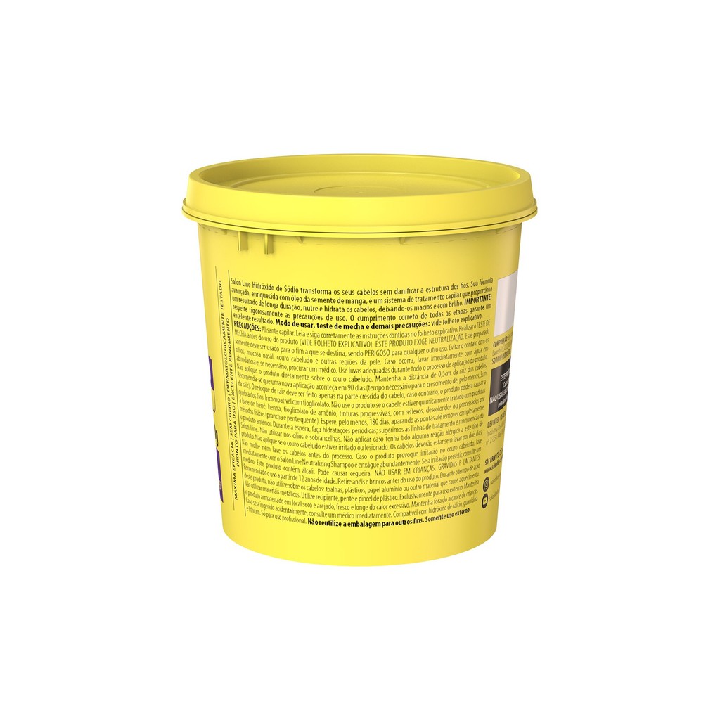 O Hidróxido de Sódio Óleo Semente de Manga Super é um sistema de relaxamento capilar que age conforme a força e o tempo de ação. Não possui cheiro. É compatível com guanidina, hidróxido de cálcio, sódio e lithium. Uso profissional. INDICAÇÕES Para quais tipos de cabelo? Cabelos grossos e resistentes. Qual a indicação? Cabelos crespos ou muito crespos. Pode usar a partir de quantos anos? A partir de 12 anos. ATIVOS Quais os principais ativos? Contém Óleo de Semente de Manga, que hidrata os cabelos, recupera e fortalece os fios. MODO DE USO Qual a melhor forma de usar? As instruções de uso completas estão contidas no folheto explicativo que acompanha o produto. A UTILIZAÇÃO INCORRETA PODE DANIFICAR O CABELO. Teste de mecha: é importante para verificar o tempo de ação ideal para o seu tipo de cabelo, bem como se os seus fios estão nas condições ideais para o relaxamento/alisamento capilar.Antes de iniciar o processo, divida o cabelo a partir do meio da cabeça em 4 partes - duas atrás e duas na frente. Aplique Keratin Hair Food Salon Line no pescoço, orelhas, em volta do rosto, na linha do cabelo e no couro cabeludo para evitar possíveis reações. Coloque luvas. Para relaxar/amaciar Aplicação: inicie a aplicação pela primeira parte na nuca com um pente de dente fino, distribuindo o produto em mechas finas mantendo a distância de 0,5 cm da raiz, evitando assim encostar o produto no couro cabeludo. Aplique também até 3 cm do comprimento do cabelo, evitando passar nas pontas do cabelo. Repita o mesmo processo de aplicação nas outras partes. Mantenha a divisão em todo processo. Para disciplinar o comprimento, volte à primeira parte usando um pente de dentes médios, aplique o produto do comprimento até as pontas. Repita o procedimento em todas as partes até que todo o cabelo tenha recebido o produto. Fique atento ao tempo que você determinou no seu teste de mecha, caso contrário não terá o efeito desejado. Fique atento: O tempo de ação deve ser contado a partir do momento que se inicia a aplicação e não quando termina. Caso seu tempo esteja acabando e você ainda não terminou de aplicar o creme em todas as partes, volte à primeira e já enxágue. Caso contrário o cabelo poderá ficar liso. Siga com enxágue, neutralização, condicionamento e finalização. Conforme indicado mais abaixo. Para alisar Aplicação: começando pela parte de trás, aplique o relaxamento generosamente com pincel mantendo 0,5 cm de distância da raiz, mecha a mecha. Cubra o cabelo o suficiente e o mais rápido possível para assegurar total cobertura de toda a cabeça. Após a aplicação do relaxamento por todo o cabelo, utilize a palma da mão para suavizar as áreas onde foi aplicado. Para obter distribuição homogênea, manuseie levemente os cabelos com as mãos. Use os últimos minutos do tempo de relaxamento para massagear o cabelo, verificando se alguma área ficou sem o relaxamento. Enxágue e neutralização: enxágue o cabelo completo, cuidadosamente, com água morna ou temperatura ambiente. Certifique-se de que todo o relaxamento tenha sido removido de todas as áreas aplicadas. O Neutralizing Shampoo Salon Line com indicador de cor é indispensável para a remoção total de resíduos, também irá alertá-lo do local onde o relaxamento não foi retirado completamente. Verifique a cor do shampoo para saber onde ainda se encontram resíduos de produto no cabelo. Lave e enxágue bem.