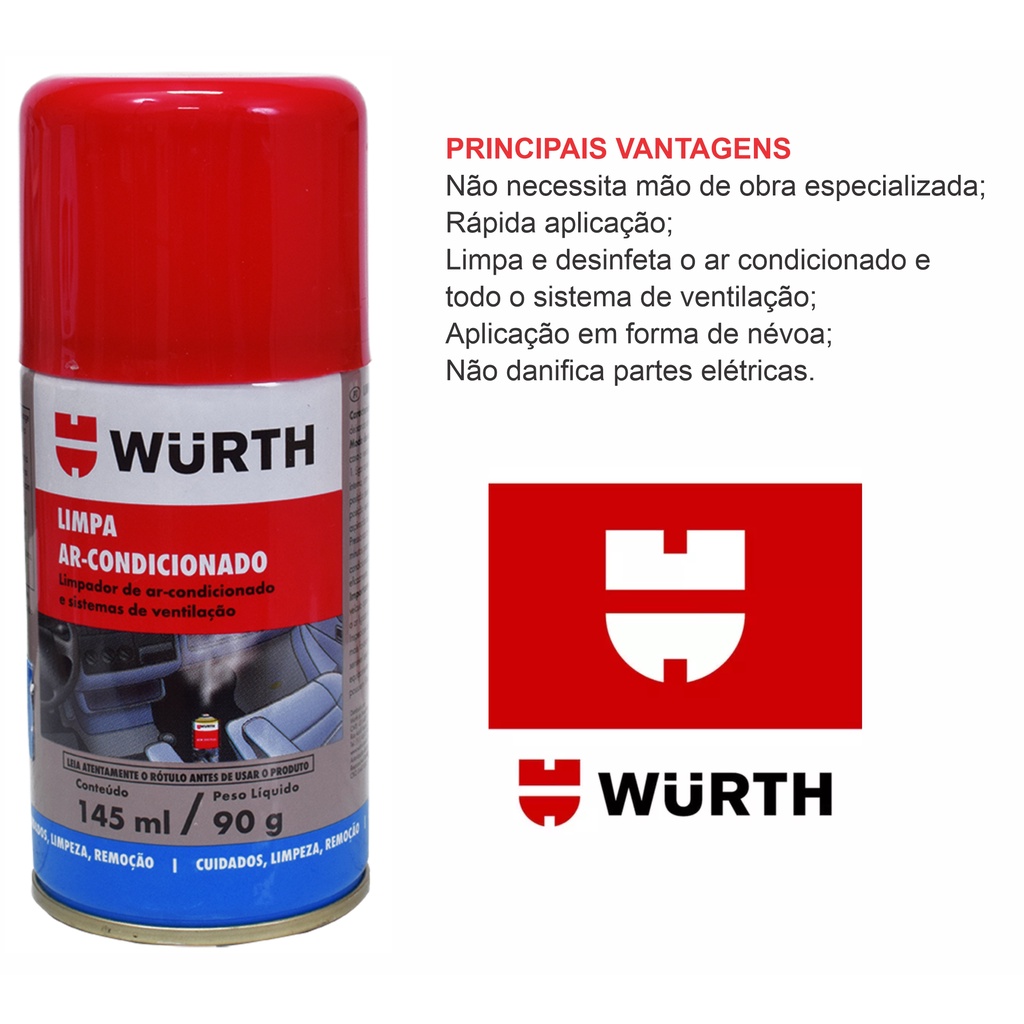 O limpa ar condicionados é um produto desenvolvido para a limpeza no sistema de ar condicionado de veículos em geral. Combate com eficiência odores desagradáveis, que proliferam no interior do ar condicionado, principalmente no evaporador, condensador, tubulações e nas partes internas, tais como: bancos, teto, cortina, piso, entre outros. Dispõe de uma válvula especial que trava após o acionamento, e libera automaticamente o produto no interior do veículo, efetuando assim a limpeza do ar condicionado. Características: - Aplicação rápida e simples; - Aplicação em forma de névoa, possibilitada pela válvula especial; - Limpa o ar-condicionado e sistema de ventilação, deixando uma fragrância agradável no ambiente interno do veículo; - Não danifica partes elétricas como central eletrônica, chicotes, etc; - Não necessita de mão de obra especializada; - Rápida liberação do veículo; - Eficaz na eliminação de odores. Aplicações: - Produto para ser utilizado no interior de automóveis; - Após o uso, secar as partes umedecidas como carpete, partes internas (painel), bancos e etc. Para uma perfeita limpeza e total garantia do produto, antes da aplicação é necessária a substituição do filtro da cabine (não incluso). Principais Vantagens: - Não necessita mão de obra especializada para aplicação; - Rápida aplicação; - Limpa o ar condicionado e sistema de ventilação; - Aplicação em forma de névoa; - Não danifica partes elétricas. Higienizador de ar condicionado, realiza a limpeza do veículo e componentes internos do ar condicionado, eliminando odores e bactérias e deixa um aroma agradável no ambiente Produto certificado ANVISA com ação contra bactérias, ácaros e fungos. APLICAÇÃO: Aplicação por spray de nebulização. Fácil de usar. Com válvula do tipo granada. Passo a passo: 1- Ligue o carro 2 - Ligue o ar condicionado em modo de recirculação interna e ventilação voltado para para-brisas 3 - Posicione o tubo no assoalho do passageiro sob o porta luvas 4- Acione o gatilho do produto até travar, saia e feche o carro e aguarde 15 minutos 5- Desligue o veículo e aguarde mais 10 minutos com o carro fechado 6 - Abra as portas e janelas para sair o excesso do aroma e está pronto! Nuvem de Tags: Limpa Ar, Limpador de Ar Condicionado, Limpador de Sistema de Ventilação, Limpeza de Ar Automotivo, Carro Novo, Wurth