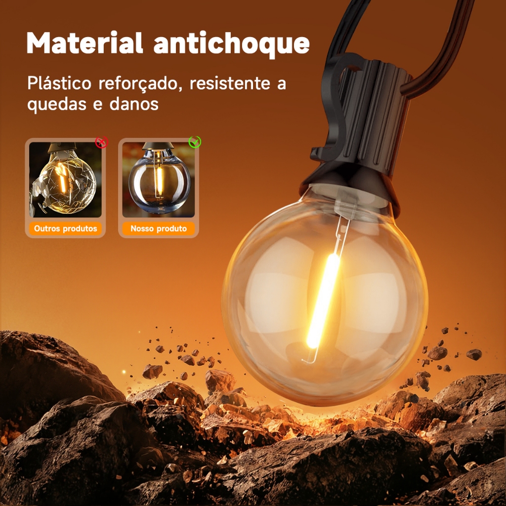 Características do Produto: Iluminação: LEDs na cor "branco quente" = amarelo Medidas: Comprimento 6 metros, 15 metros, 23,5 metros Espaço de 0,5 metros entre as lâmpadas Leds no total de 10/28/45 Acompanha soquete - Material / Composição: Plástico e LEDs Tensão: 110v / 220v Lâmpada: 0.7W - Potência: 0.7W / uma lâmpada Vida útil: 30.000 horas Calor de trabalho: 80-98'f Modelo da lâmpada: E12 Economia de contas Conteúdo do produto: Corda de luz (incluindo lâmpada e cabo de alimentação) Características Especiais da marca: Luzes externas com economia de energia: nossas lâmpadas Edison usam lâmpadas LED com economia de energia que consomem apenas 0,7 watts, reduzindo drasticamente as contas de eletricidade em comparação com outras lâmpadas - Luzes de corda LED inquebráveis e à prova d'água: Esta luz de corda ao ar livre é feita de material PET grosso e inquebrável que protege as lâmpadas de temperaturas extremas, sol, vento, chuva, neve e umidade Luzes de pátio conecionáveis: Todas as luzes de cordas ao ar livre são compatíveis com dimmers e podem ser conectadas com outras luzes de pátio conectadas: Todas as luzes de cordas ao ar livre são compatíveis com dimmers e podem ser conectadas com outras luz Se você acha que sua luz de varal não é longa o suficiente, você pode continuar adquirindo nossos produtos diretamente e conectá-los. Os nossos varal iluminados podem ser conectados juntos e em comprimentos de até 100m. Conectividade fácil: Enviamos a festão com um plugue macho instalado, garantindo uma instalação rápida e sem problemas. - Adaptável: Varal compatível com tensões de 110V e 220V, este festoon é versátil e pronto para brilhar em qualquer lugar. Primeiro de segurança: Totalmente isolado para conexões externas, o cabo torcido garante uma experiência segura e confiável. Ideal para Todas as Ocasiões: Ótimo material para decoração de festa ou evento especial em nossas vidas; Casamentos de Bebê, Chás de Cozinha, Casas País ou Fazendas, Bares ou Quartos de Festa, Chuveiros de Bebê, Chás de Cozinha, Casas País ou Fazendas, Bares ou Sala de Festa, Varandas e jardins de varandas e jardins Atmosfera aconchegante: Crie uma atmosfera aconchegante e convidativa em qualquer evento especial. Precauções de uso do produto: 1. Caso contrário, o produto precisa ser usado na tensão correta, caso contrário o bulbo queimará. 2. As lâmpadas LED de longa vida útil e basicamente não queiram, a menos que sejam causadas por fatores humanos. 3. Antes de usar o produto, certifique-se de que todas as lâmpadas estejam apertadas antes de iniciar o uso. 4. Lâmpada sobressalente. Para backup. 5. Inspecionamos e embalamos todos os produtos antes do envio. Inspecionamos e embalamos todos os produtos antes do envio. As próprias lâmpadas são feitas de pavios de plástico e LED, por isso não estão sujeitas a danos. Atenção - ESPECIFICAÇÕES: Prezado cliente Caro cliente, se houver necessidade de especificar o varal, preste atenção aos limites correspondentes a cada tensão: Para maiores informações nos envie uma mensagem via CHAT, estamos a disposição para tirar mais informações, nos envie uma mensagem pelo CHAT, estamos a disposição para tirar qualquer dúvida.