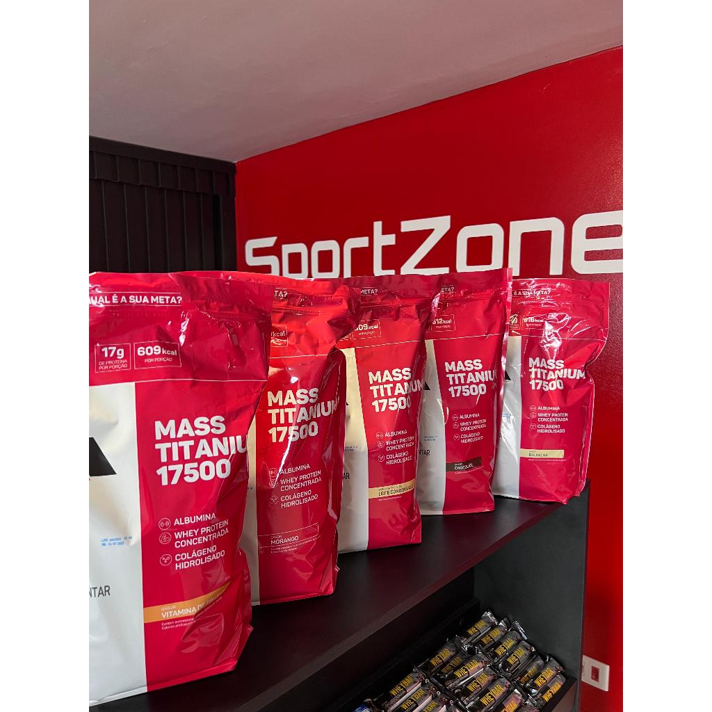 Hipercalórico Para Ganho de Massa Max titanium - Refil 3kg Produto Original direto da fabrica e com nota fiscal! Só na Sport Zone Suplementos MASS TITANIUM 17500 é o hipercalórico ideal para auxiliar atletas e praticantes de atividade física no aporte energético de que necessitam. Sua fórmula exclusiva contém três fontes de proteínas com alto valor biológico: whey protein concentrada, colágeno hidrolisado e albumina (clara de ovo). As proteínas auxiliam na formação dos músculos e ossos. Recomendação de uso: É possível utilizar MASS TITANIUM 17500 antes e depois do treino ou conforme a orientação profissional. Ingredientes: Sabor : Baunilha Maltodextrina, proteína concentrada do soro do leite (WPC), clara de ovo desidratada (albumina), colágeno hidrolisado, aromatizante e edulcorante sucralose. NÃO CONTÉM GLÚTEN. Sabor : Chocolate Maltodextrina, proteína concentrada do soro do leite (WPC), clara de ovo desidratada (albumina), cacau em pó, colágeno hidrolisado, aromatizante, antiumectante dióxido de silício e edulcorante sucralose. NÃO CONTÉM GLÚTEN. Sabor : Leite Condensado Maltodextrina, proteína concentrada do soro do leite (WPC), clara de ovo desidratada (albumina), colágeno hidrolisado, aromatizante e edulcorante sucralose. NÃO CONTÉM GLÚTEN. Sabor : Morango Maltodextrina, proteína concentrada do soro do leite (WPC), clara de ovo desidratada (albumina), colágeno hidrolisado, aromatizante, edulcorante sucralose e corantes artificiais amaranto e azul brilhante fcf. NÃO CONTÉM GLÚTEN. Sabor : Vitamina de Frutas Maltodextrina, proteína concentrada do soro do leite (WPC), clara de ovo desidratada (albumina), colágeno hidrolisado, aromatizante, edulcorante sucralose e corante artificial amarelo crepúsculo. NÃO CONTÉM GLÚTEN. Destaques: 17g de proteínas por porção 619 kcal por porção Whey Protein Concentrada Albumina Colágeno Hidrolisado Modo de Preparo: Bata no liquidificador 160g (5 dosadores*) em 250mL (1 copo) de leite integral, desnatado ou água mineral. *A quantidade da porção no dosador pode variar em função da densidade e outras características do produto. Advertências: ESTE PRODUTO NÃO É UM MEDICAMENTO. NÃO EXCEDER A RECOMENDAÇÃO DIÁRIA DE CONSUMO INDICADA NA EMBALAGEM. MANTENHA FORA DO ALCANCE DAS CRIANÇAS. ESTE PRODUTO NÃO DEVE SER CONSUMIDO POR GESTANTES, LACTANTES E CRIANÇAS. Alergênicos: CONTEM LEITE E OVO. PODE CONTER SOJA. CONTÉM LACTOSE.