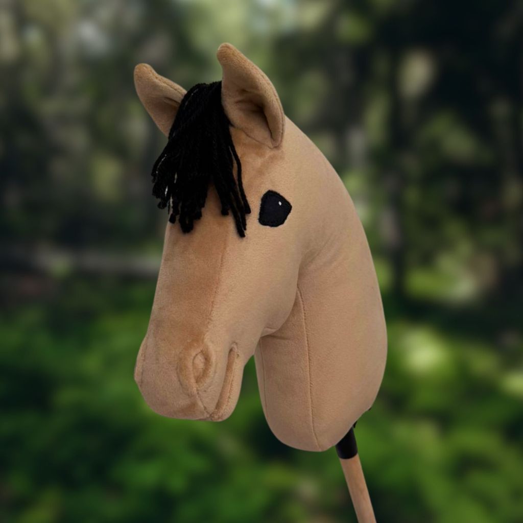 Hobby Horse Dave Cavalinho de pau com acabamento artesanal, tecido macio e crina preta. Leve, resistente e perfeito para brincadeiras e treinos de hobby horse!