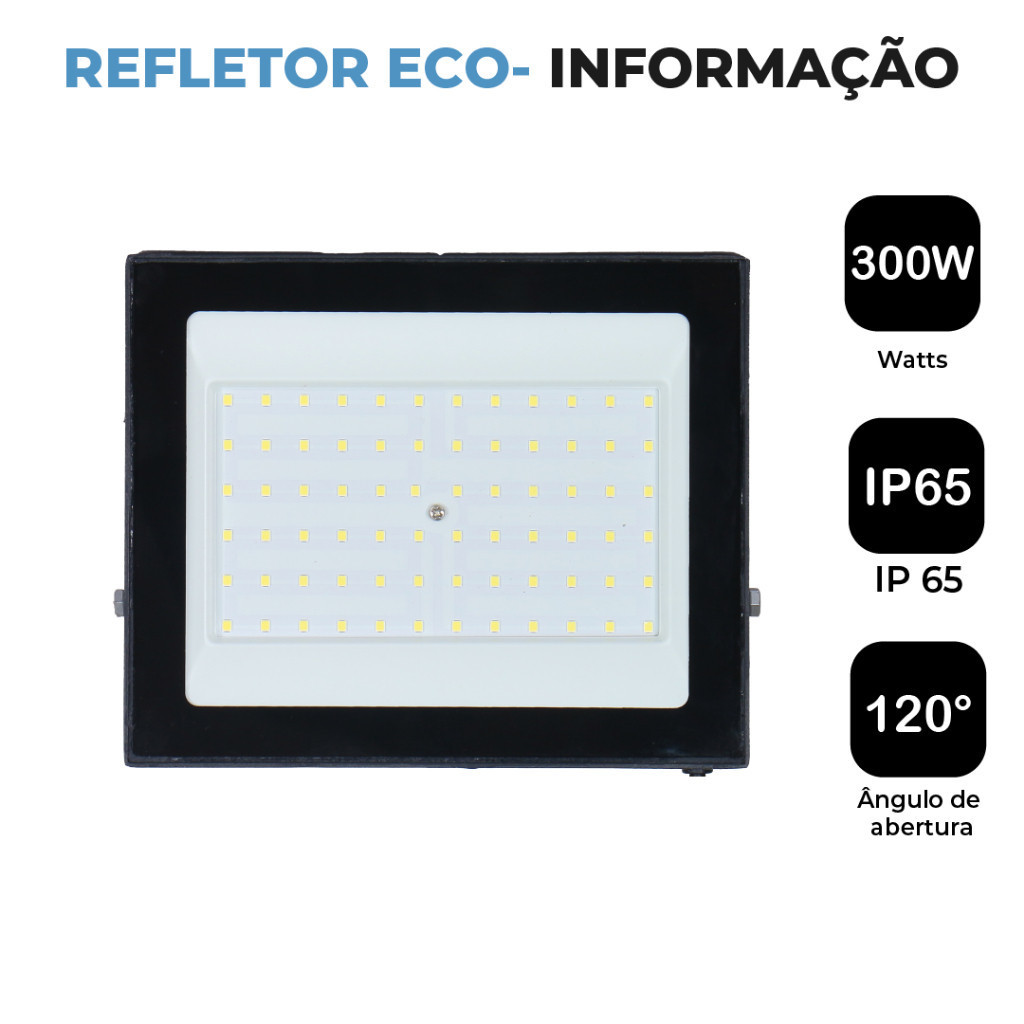 Holofote Refletor Led ECO Pro 300W Luz Fria IP65 | Luz Econômica | Para Jardim | Ambiente