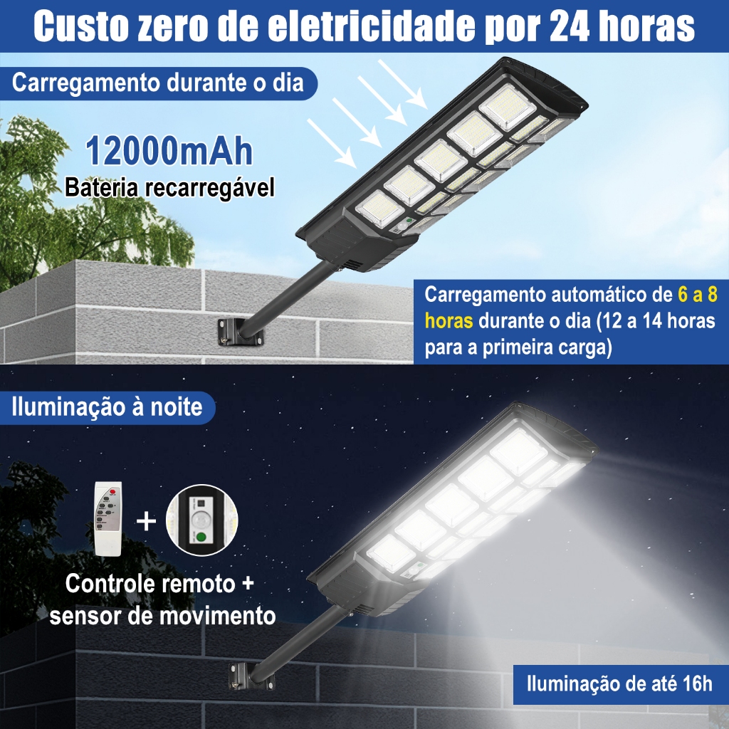Holofote Solar 850w Refletor Poste 12000mah 0 Eletricidade Controle 6 Modos