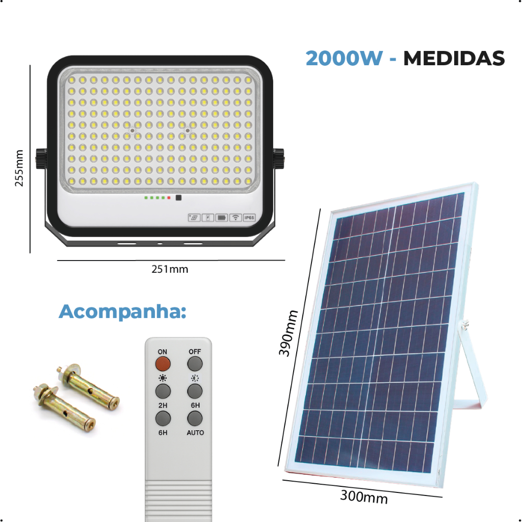 💡 Refletor LED Ultra Potente 1000W - Iluminação Máxima para Grandes Espaços! 💡 ✅ Especificações Técnicas: 💡 Potência: 1000W LUMEN: 2800LM 🌞 Potência da Placa Solar: 25W 🔋 Duração da Bateria: 12-15 horas ⚡ Tensão: 3,2V 🔆 Lumens: 2600 LM 📐 Ângulo de Abertura: 90° 🎨 Cor da Luz: Branco Frio (6500K) 🔄 Vida Útil: 50.000 horas 🎨 IRC (Índice de Reprodução de Cor): RA 70 💦 Proteção contra Água e Poeira: IP66 🔒 Garantia: 2 anos ⚙️ Cor do Material: Preto 🌐 Benefícios e Destaques: ✨ Potência extraordinária de 1000W para iluminação intensiva de amplos espaços. ♻️ Eficiência energética com placa solar de 25W. 🕒 Longa duração da bateria, garantindo até 15 horas de iluminação contínua. 🌈 Luz branca fria (6500K) para ambientes nítidos e bem iluminados. 🔄 Ângulo de abertura de 90° para cobertura abrangente. 💦 Resistência à água e poeira com classificação IP66. 🔒 Garantia de 2 anos para sua total tranquilidade. 💡 Adquira o Refletor LED de 1000W e leve a iluminação de alta performance para seus ambientes. Ideal para aplicações externas que exigem máxima luminosidade e eficiência. Transforme seus espaços agora! 🌟 💡 Holofote Refletor LED Solar 2000W – Prova D'Água | Com Placa Solar | Para Jardim e Áreas Externas 💡 Ilumine seu ambiente externo com eficiência e economia! Este holofote LED solar de 2000W é ideal para jardins, fachadas, quintais e qualquer espaço que precise de iluminação potente e sustentável. Destaques do Produto: • Alta Potência: 2000W com iluminação forte e eficiente na cor Branco Frio (6500K). • Energia Solar: Funcionamento 100% autônomo, sem necessidade de fios ou gastos com eletricidade. • Resistência e Durabilidade: Classificação IP65, resistente à chuva e poeira, ideal para ambientes externos. • Fácil Instalação: Acompanha placa solar, controle remoto, parafusos e suporte para fixação. • Econômico e Sustentável: Energia renovável e iluminação de longa duração. ⚠️ ATENÇÃO: O título "Kit 3" não influencia na quantidade enviada. Escolha a quantidade desejada (1 até 3 peças) nas variações abaixo. 📦 Entrega rápida + Nota Fiscal!