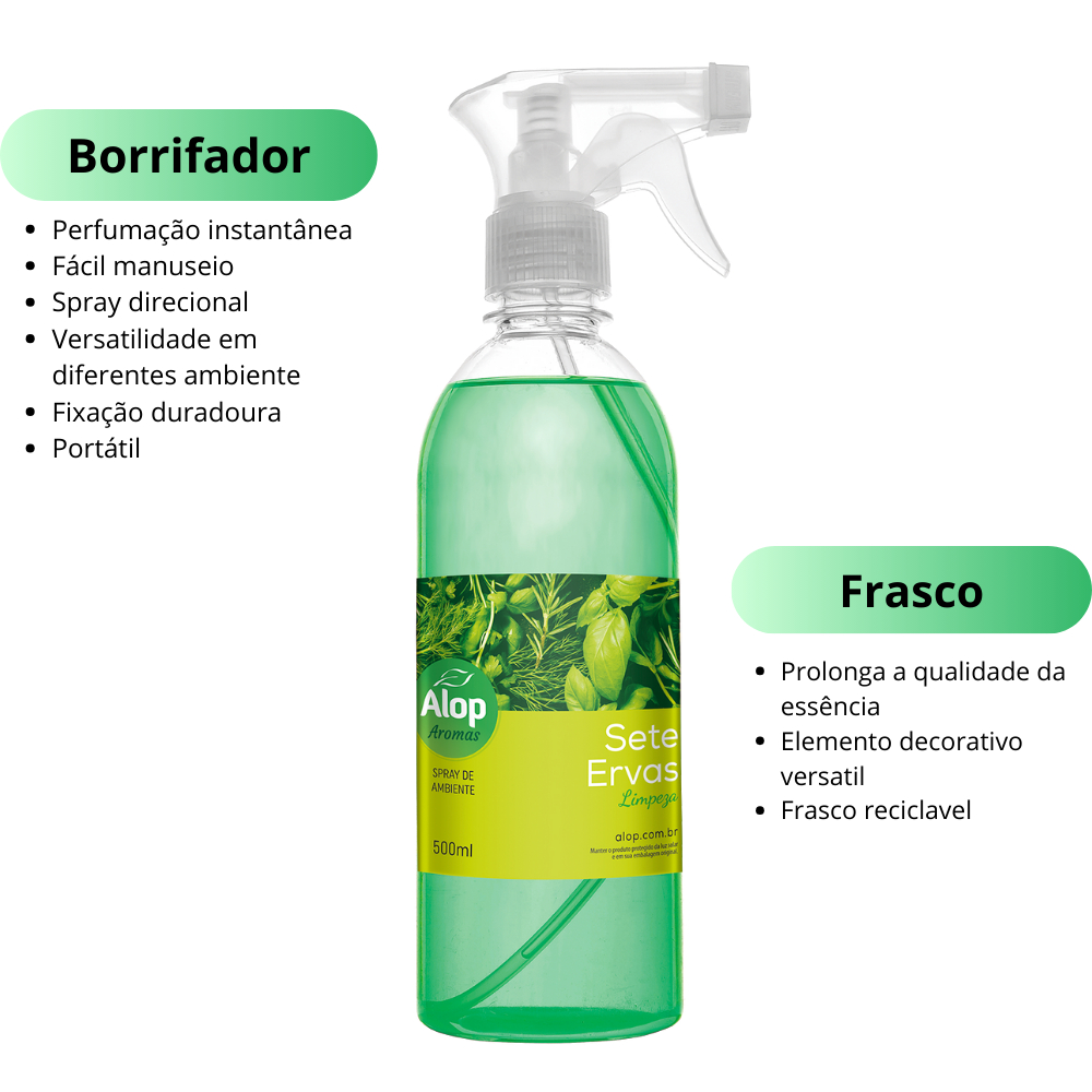 Spray de Ambientes e Tecidos 500ml Alop Aroma: Sete Ervas O Spray de Ambientes e Tecidos 500ml Alop, enriquecido com a harmonia da fragrância de Sete Ervas, destaca-se como uma escolha distinta para perfumar generosamente o seu ambiente e tecidos. Com notas herbais e revigorantes, este spray foi cuidadosamente formulado para criar uma atmosfera agradável e equilibrada, mantendo uma abordagem discreta e sofisticada. Dois benefícios notáveis: Equilíbrio e Revitalização: A fragrância de Sete Ervas confere uma sensação de equilíbrio e revitalização ao ambiente, proporcionando uma experiência olfativa suave e revigorante. Ideal para criar uma atmosfera harmoniosa em momentos de descanso. Delicadeza Perfumada nos Tecidos: Além de perfumar o ar, o spray oferece uma delicadeza perfumada nos tecidos. Ideal para aplicação em lençóis, travesseiros e cortinas, proporcionando uma atmosfera aconchegante e perfumada por mais tempo. O Spray de Ambientes e Tecidos 500ml Alop de Sete Ervas não apenas perfuma, mas também transforma seu espaço em um ambiente equilibrado e delicadamente perfumado, elevando a sensação de bem-estar de forma discreta e elegante.