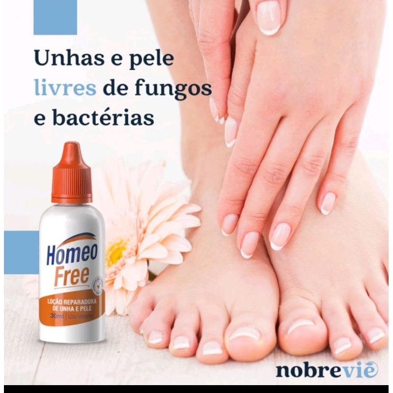 ******** TODOS OS PRODUTOS SÃO DESPACHADOS IMEDIATAMENTE TODAS AS COMPRAS SÃO ENVIADAS COM NOTAS FISCAIS ********** Regenerador e fortalecedor de unha e pele, mantendo-a bonita e com aspecto saudável. Conteúdo:30 ml O HomeoFree é uma loção regeneradora da pele especialmente de mãos e pés, além de auxiliar no fortalecimento e hidratação das unhas. Com fórmula exclusiva NobreVie, contémóleos essenciais de Cravo, Tea Tree (Melaleuca)conhecidos por suas ações antifúngicas e bactericidas e tambémD-Pantenol, pró vitamina B5, com sua ação hidratante, suavizante e umectante. Componentes nutritivos e ideais para manter pele e unhas de pés e mãos bonitas e sempre à mostra. Regenera unhas e pele, especialmente entre dedos de pés e mãos; Ótimos resultados em unhas com camada dupla; Produto incolor; Não mancha a pele; Sem fragrância sintética; Recomendado por podólogos; NÃO realizamos testes em animais. Somos uma empresa na lista PEA.
