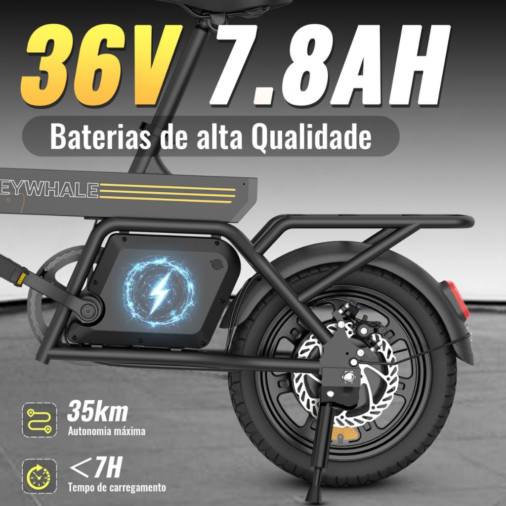 Potente Sistema de Potência: Equipada com um motor de alto desempenho de 440W, a bicicleta elétrica B20 pode atingir uma velocidade máxima de 32 km/h (após remover o limite de velocidade) e superar inclinações de até 15°, enfrentando com facilidade os desafios das vias urbanas. Com uma bateria de 7,8 Ah, oferece uma autonomia de 35 km, atendendo plenamente às necessidades dos deslocamentos diários e proporcionando maior tranquilidade durante o trajeto. Proteção de Segurança Completa: Equipada com sistema de freio a disco duplo dianteiro e traseiro, oferece resposta de frenagem sensível e confiável. A luz traseira pisca automaticamente ao frear e, combinada com o refletor, forma um alerta de 360° em todas as direções, aumentando significativamente a segurança durante a condução noturna ou em condições de baixa visibilidade. Três modos Inteligentes de Condução: Oferece três modos: modo totalmente elétrico (potência total), modo assistido (assistência inteligente) e modo manual (pedalada tradicional). É possível alternar livremente entre os modos de acordo com as condições da estrada e necessidades do usuário, atendendo a diversos cenários como deslocamentos, exercícios e muito mais. Design Prático e Humanizado: O painel multifuncional exibe claramente dados importantes como velocidade, nível da bateria e modo de condução. O assento ajustável acomoda usuários de diferentes alturas. A grade traseira antiderrapante é útil para transportar objetos. A buzina clara avisa pedestres. Cada detalhe foi cuidadosamente pensado para o seu conforto. Armazenamento Conveniente: A bicicleta elétrica B20 adota um inovador design de dobra vertical. Após dobrada, torna-se compacta e pode ser facilmente colocada em elevadores, porta-malas de carros ou cantos da casa, resolvendo o problema de estacionamento na vida urbana e tornando seus deslocamentos mais flexíveis e livres. 1. Modelo do produto: B20 - Bicicleta Elétrica 2. Tensão de saída: 36V 3. Capacidade da bateria: 7,8AH 4. Tempo de carregamento: 6,5 horas 5. Potência do motor: Potência nominal de 350W, podendo atingir até 440W 6. Tamanho do pneu: 14 polegadas 7. Grau de impermeabilidade: IP54 8. Velocidade máxima: 32 km/h 9. Autonomia elétrica máxima: 35 km (no modo de assistência elétrica a autonomia é maior do que no modo puramente elétrico) 10. Carga máxima: 120 KG 11. Material: Ferro 12. Sistema de freio: Freios a disco duplo dianteiro e traseiro 13. Painel de instrumentos: Quilometragem, modo de velocidade, nível da bateria, velocidade atual, modo de partida, farol 3 modos de condução: 1.Modo apenas pedal: Condução somente com pedais sem pressionar o botão de ligar 2.Modo com assistência elétrica: Pressione o botão de ligar e pedale. O pedal e o motor elétrico funcionam juntos para reduzir o esforço 3.Modo puramente elétrico: Pressione o botão de ligar e gire o acelerador para pilotar apenas com eletricidade. Há 3 marchas com diferentes limites de velocidade Destaques do produto: 1.3 modos de condução 2.Painel multifuncional 3.Design leve e dobrável 4.3 modos de velocidade: 15-20-25 km/h. Após desbloquear o limite de velocidade, pode chegar até 32 km/h 5.Para desbloquear: com a bicicleta desligada, pressione e segure o botão de ligar por 10 segundos até aparecer F2 na tela. Isso ativa o modo de 4 velocidades (F1: até 25km/h; F2: até 32km/h) Especificações do produto: 1.Dimensão do produto: 124*53*101 cm 2.Dimensão dobrada: 124*40*78 cm 3.Peso líquido do produto: 21,3 ± 0,3 kg