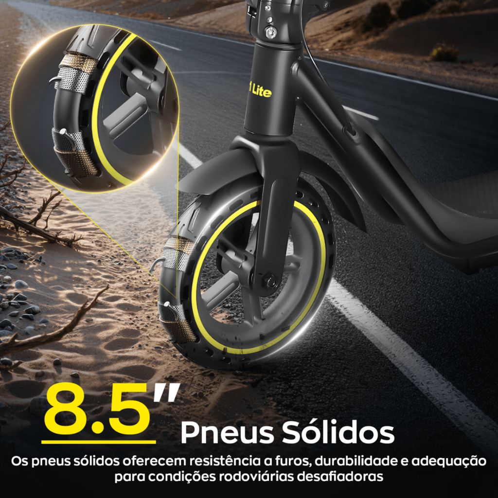 Motor Potente de 500W: O patinete elétrico HONEYWHALE M1 LITE vem equipado com um motor robusto de 500W, oferecendo 4 modos de velocidade ajustáveis e alcançando até 25KM/H. Atende a diferentes necessidades de condução. Com uma única carga, pode percorrer 16KM, tornando os deslocamentos diários, compras ou passeios curtos muito mais práticos e eficientes. Condução Inteligente e Controle Prático: O scooter conta com um sistema de controle inteligente. A tela LCD exibe em tempo real informações essenciais como velocidade, autonomia e nível da bateria. Através da conexão Bluetooth com o aplicativo exclusivo, é possível travar o veículo, alternar modos de condução, controlar as luzes e ativar o piloto automático com apenas um clique. Uma solução completa para oferecer mais conveniência em cada viagem. Pneus Sólidos de 8,5 Polegadas: Equipado com pneus sólidos de alta elasticidade de 8,5 polegadas, dispensa preocupações com furos ou vazamentos. Garante uma condução estável mesmo em ruas irregulares ou caminhos de cascalho, proporcionando conforto e segurança. Um parceiro confiável para deslocamentos urbanos e explorações ao ar livre. (Requer instalação da roda dianteira, processo muito simples). Segurança Reforçada: O sistema de freio eletrônico responde de forma rápida, garantindo frenagens suaves e eficientes, reduzindo a distância de parada. O farol dianteiro superbrilhante ilumina o caminho, enquanto a lanterna traseira com sensor automático pisca em alta frequência durante a frenagem, aumentando a segurança em trajetos noturnos. Certificado pela UL2272, atende a rigorosos padrões de segurança para garantir tranquilidade em cada viagem. Dobrável em 3 Segundos, Portátil e Leve: O design inovador de dobra permite que o scooter seja dobrado em apenas 3 segundos. Pesando apenas 12,5kg, pode ser carregado facilmente com uma mão. Compacto após dobrado, cabe no porta-malas do carro ou em pequenos espaços sem ocupar muito lugar. Suporta até 120kg, adequado tanto para adultos quanto adolescentes, tornando suas viagens ainda mais práticas.