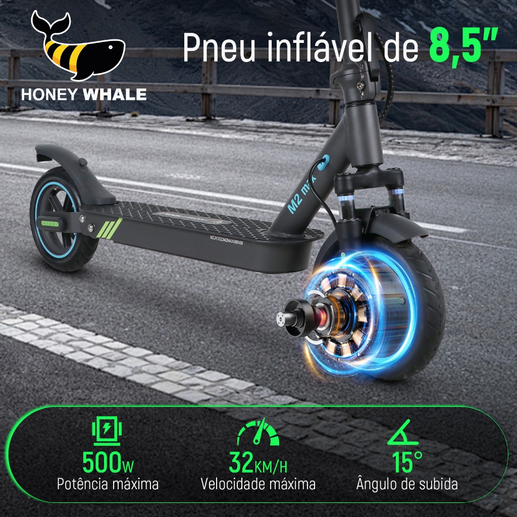 HONEYWHALE M2 MAX Patinete Elétrico Adulto, 500W Scooter Eletrica, 32KM/H, 22KM Autonomia Máxima