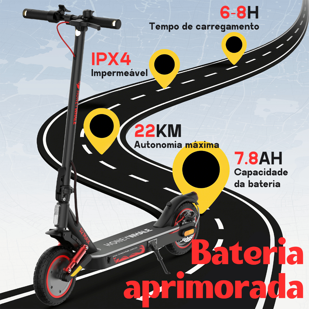 500W de Potência Robusta: O patinete elétrico HONEYWHALE S2 MAX vem equipado com um motor potente de 500W, atingindo facilmente a velocidade máxima de 32KM/H e enfrentando inclinações de até 15° sem esforço. O design de tração dianteira oferece excelente aderência, aceleração rápida e controle preciso. Seja para deslocamentos urbanos ou passeios de lazer, ele garante uma condução fluida. Com a bateria de 7.8AH, uma única carga proporciona até 22KM de autonomia confiável, atendendo às suas necessidades diárias de mobilidade. Conectividade Inteligente ao Seu Alcance: O patinete conta com uma tela LCD clara, exibindo em tempo real velocidade, modos e status do controle de cruzeiro. Através do APP exclusivo conectado ao smartphone, você desbloqueia diversas funções inteligentes: travar/destravar, alternar modos, controle de cruzeiro com um clique e muito mais. Acompanha um suporte para celular, tornando a navegação ainda mais prática. Dupla Absorção de Impacto: O sistema de suspensão por mola dianteira do S2 MAX garante conforto mesmo em calçadas irregulares, estradas de cascalho ou ruas esburacadas. Em conjunto com os pneus infláveis de alta elasticidade de 10 polegadas, cria um duplo mecanismo de amortecimento, oferecendo 35% mais eficiência de absorção de impacto em comparação com pneus sólidos. Segurança Dia e Noite: Equipado com setas para garantir sinais de direção claros, além de luzes de LED no deck que aumentam a visibilidade noturna e adicionam estilo ao design. O farol dianteiro superbrilhante e a lanterna traseira de advertência asseguram visibilidade em qualquer condição. Design Leve e Portátil: Construído com estrutura de liga de alumínio resistente, suporta até 120KG, garantindo durabilidade. O design inovador de dobra permite ser recolhido em apenas duas etapas (em até 3 segundos!), facilitando o armazenamento no porta-malas do carro ou em pequenos espaços dentro de casa. Compacto e prático, acompanha você sem esforço.