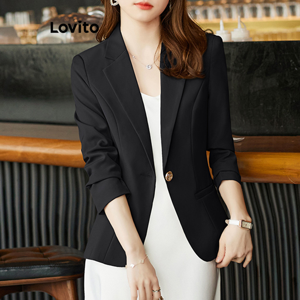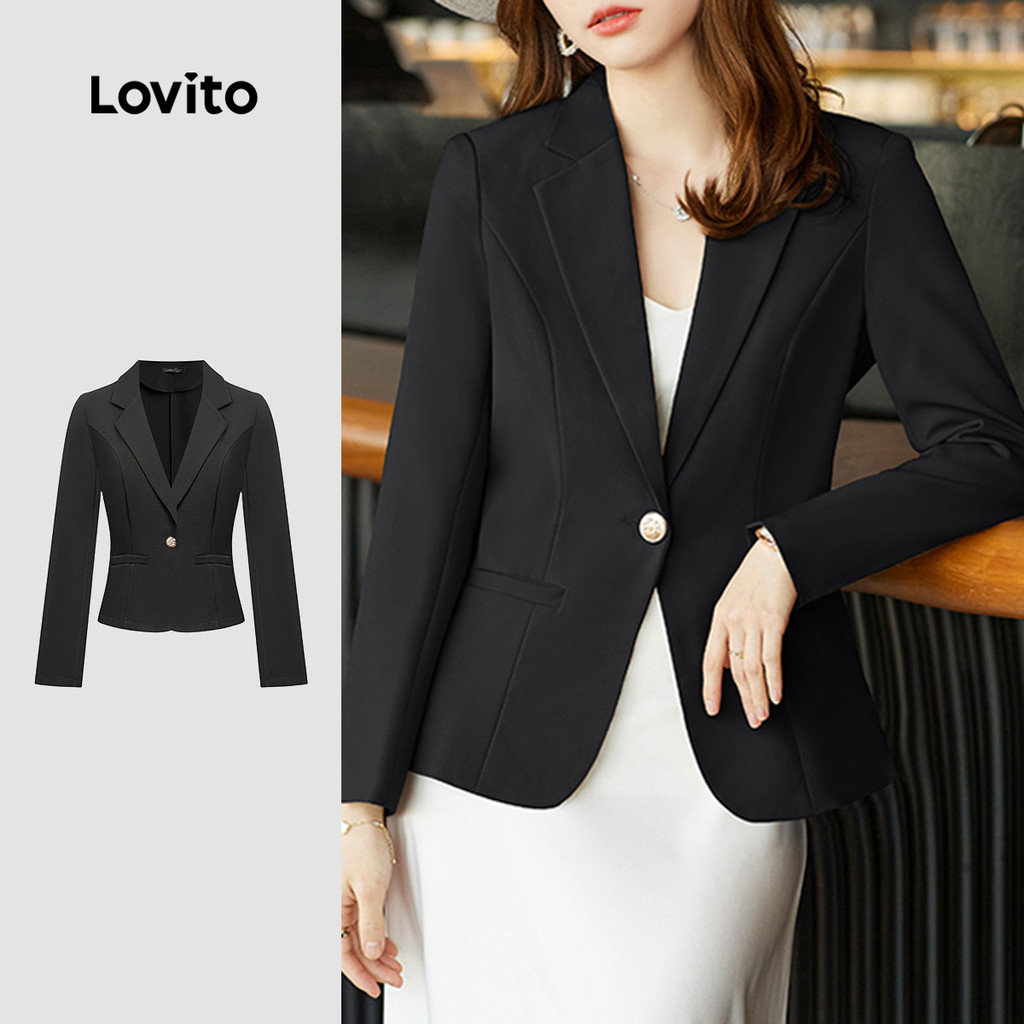 (Hot) Lovito Blazer Casual Blazer De Botão Liso Para Mulheres L98AD160