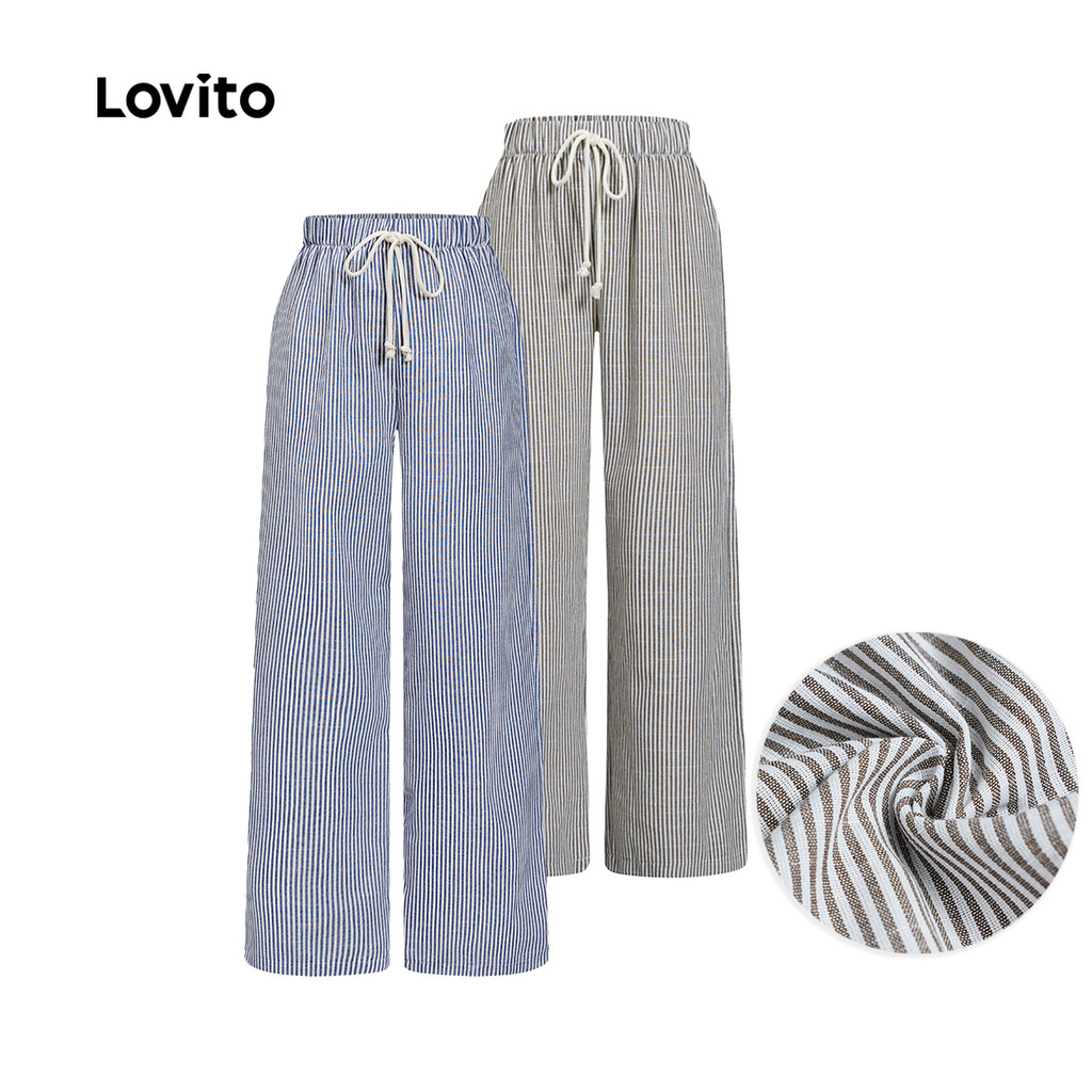 (Hot) Lovito Calça Casual Listrada Com Cordão E Tecido Texturizado Para Mulheres L93AD016 (Multicolorido)