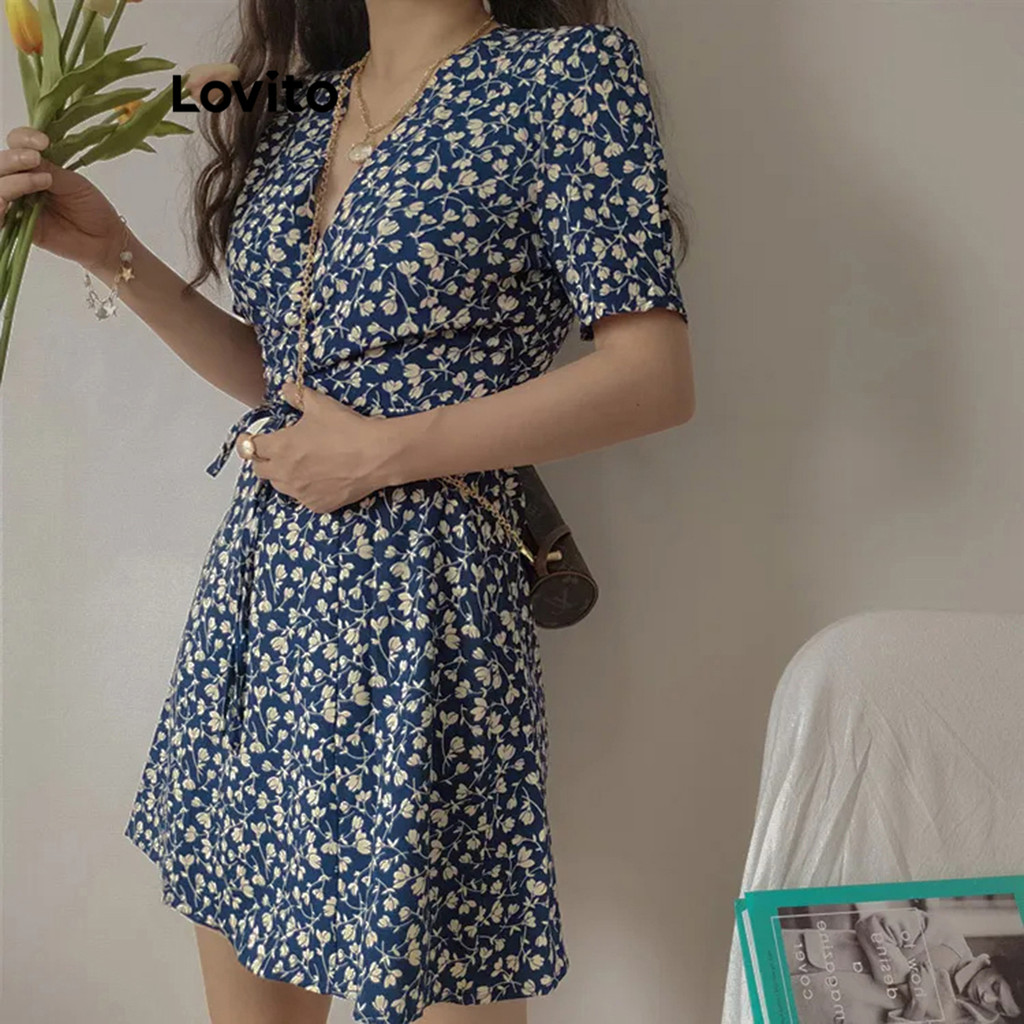 (Hot) Lovito Casual Vestido Envelope Floral para Mulheres L80ED279