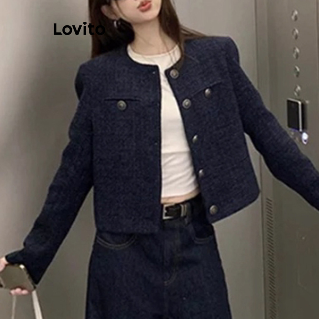 (Hot) Lovito Jaqueta Casual Com Padrão Liso Para Mulheres LNA79082