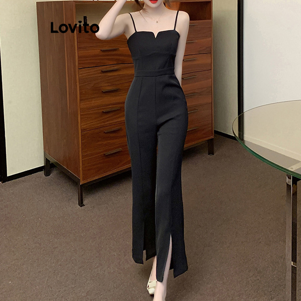 (Hot) Lovito Macacão Elegante Com Divisão Lisa Para Mulheres L80ED349 (Multicolorido)